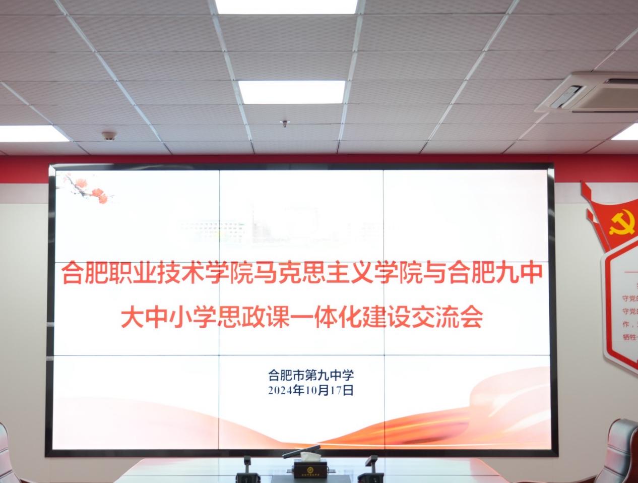 为深入学习贯彻习近平总书记对学校思政课建设重要指示精神,进一步推进大中小学思政课一体化共同体建设工作,推动大中小一体化建设和党的创新理论最新成果入脑入心,2024年10月17日,合肥职业技术学院马克思主义学院党支部书记王文飞、教学办主任朱子琪,来校进行交流。校党委副书记、校长张永剑,办公室主任万爱华参会。