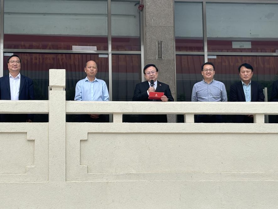 合肥九中党委副书记、校长张永剑首先致欢迎词,他代表学校向心系母校、情牵九中的苏州伦华教育集团校长曹伦华先生表示诚挚感谢!对曹伦华先生荣归九中、共忆青春表示热烈欢迎!学校始终是校友深深的眷恋,曹伦华校长专门捐资设立合肥九中博慧奖学金,体现了他对九中的关怀之心坚如磐石、从未改变。今天“博慧”石落成,不仅是曹校长的深情告白,更是“做真人、成英才”校训精神的生动写照,校友与九中“心连着心”的故事只有续集、没有终章,必将载入丹青、激励后人。