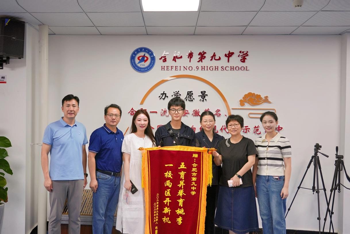“饮其流者怀其源,学其成时念母校”。吴九思同学在合肥九中三年的学习征程已然画上完美句号。踏浪前行之际,携家人一起送上锦旗感恩母校,祝福母校“五育并举育桃李,一校两区开心机。”感恩是他身上折射出来的光芒,回望往昔成长岁月,吴九思同学在与高考赛跑的同时,幽默风趣的他总是班里的“小甜豆”,在欢笑中为同学们减轻学习的压力。学习上,是同学们的好榜样,无私的为同学们答疑解惑,和18班所有的同学们一起为高考助力。岁月因青春慨然已赴而更加静好,世间因少年挺身向前而更加精彩!