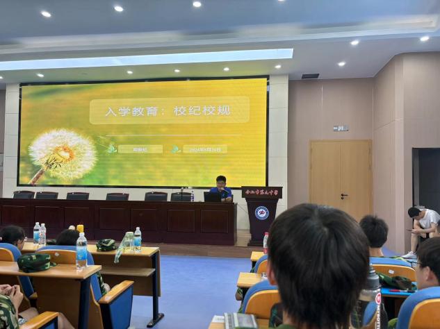 上午的军事训练结束后,同学们分批进入阶梯教室,接受了由周毅带来的新生入学教育。周主任从学校的规章制度、个人行为规范等多个方面进行了详细介绍,帮助同学们更好地了解学校,明确自己作为合九一份子的责任与使命。这场入学教育,不仅为同学们的校园生活奠定了坚实的基础,也激发了他们对未来学习生活的无限憧憬。