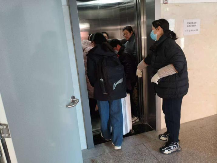 下午,老师们早早在岗位上准备就绪,迎接学生的到来。看到学生们拖着行李,老师们立刻上前帮忙,穿梭在校园中,将学生的行李安全送到寝室。为了让学生更便捷地搬运行李,有的老师专门负责刷电梯,有序引导学生上下楼。进入寝室后,老师们还协助学生整理物品,耐心地给予生活上的指导和建议。