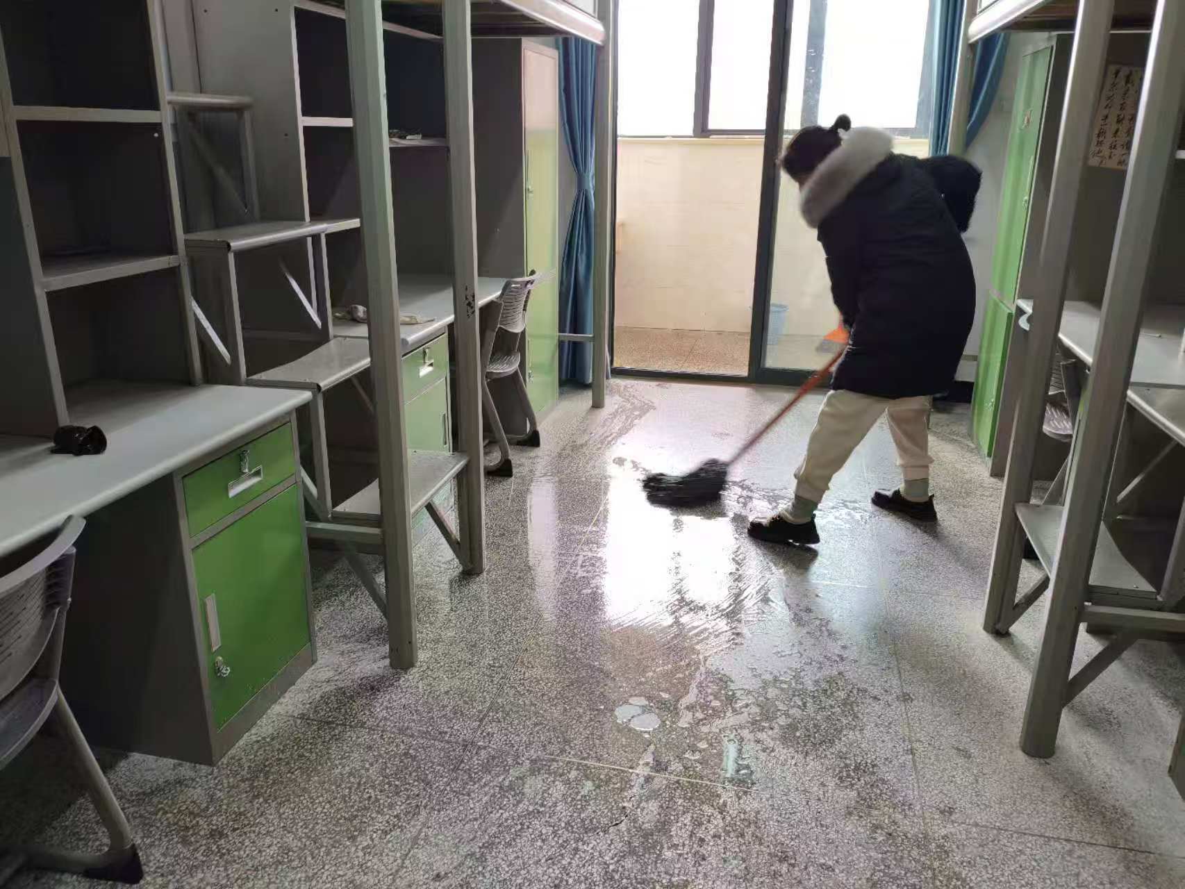 清晨,当第一缕阳光洒满校园,住宿区的生活老师们早已提前到岗,他们穿梭于各个寝室之间,忙碌地进行着开学前的准备工作。从拖地、擦桌子到开窗通风,再到检查水、电等设施,每一步都细致入微,确保为学子们营造一个温馨、舒适、安全的生活环境。