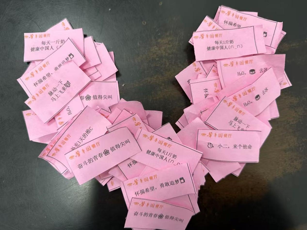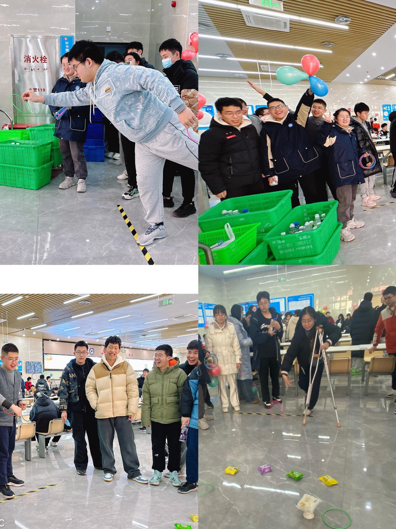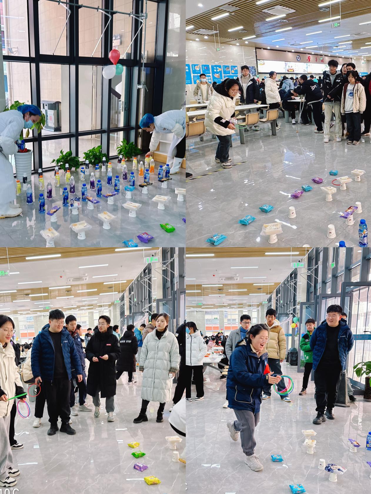 辞旧迎新,欢乐不停。为庆祝元旦,合肥九中四牌楼校区餐厅员工为师生装饰了就餐区,营造了新年的氛围,还专门为每位同学准备了元旦小礼品,及欢乐套圈趣味活动。餐厅制作了独特的兑换彩券,有“怀揣希望、勇敢追梦”、“奋斗的青春,值得尖叫”、“脉动一下,马上飞来”等,对应着不同的礼品,赠送给每一个学生。