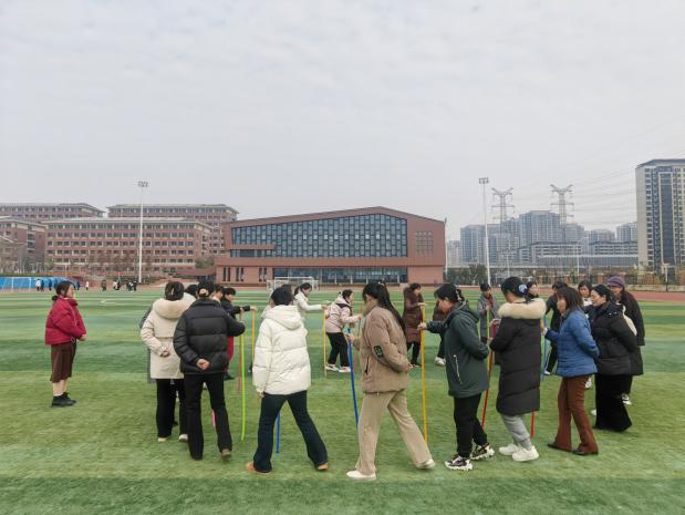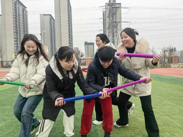 随着活动的深入,场地由室内转向了室外。在“不倒森林”游戏中,老师们需要共同维持一根根竖立的杆子不倒,这不仅考验着他们的协作与平衡能力,更让大家深刻体会到了团队协作的重要性。而在“珠行万里”游戏中,老师们则通过默契的配合,让小球在曲折的管道中顺利前行,体验到了团队合作带来的无尽乐趣与成就感。