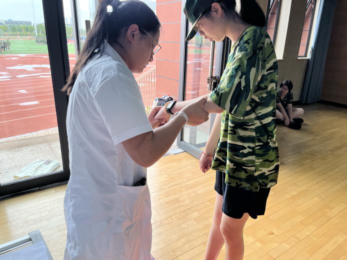 军训强体魄 “天使”暖人心:赤日炎炎似火烧,为保障新生军训顺利开展,更好的为新生、教官提供后勤医疗保障服务,总务处提前谋划,设置军训现场医疗服务保障点,安排校医全程现场值守,备足防暑降温、跌打损伤、葡萄糖等药品,全力保障新生军训期间的生命健康安全。