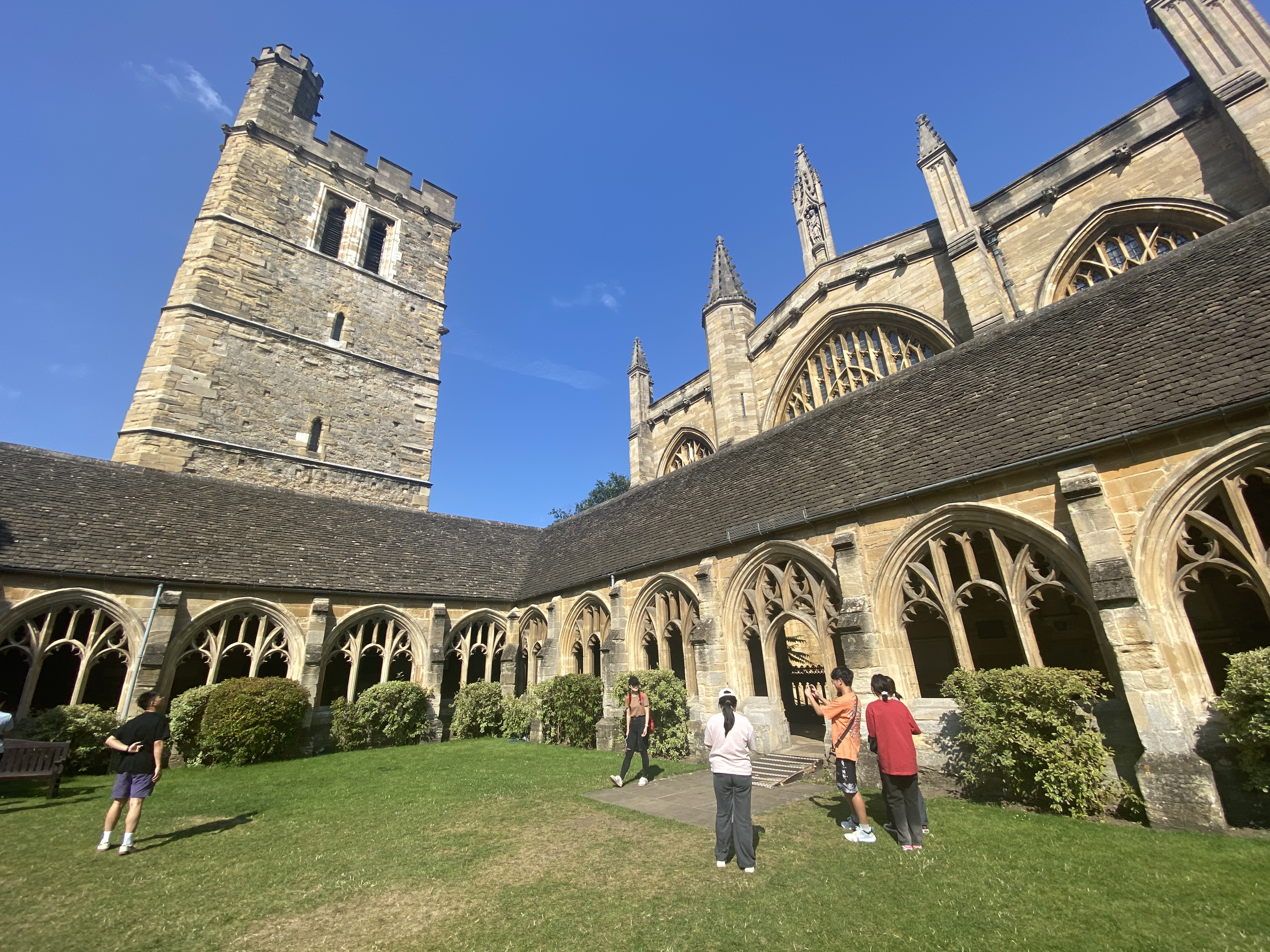 在牛津,同学们重点参观了新学院。这里有古城墙,有大草坪,有幽静的院落,有肃穆又带着神秘气息的回形走廊,让同学们情不自禁地飞驰起对于电影《哈利波特》中有关场景的想象。