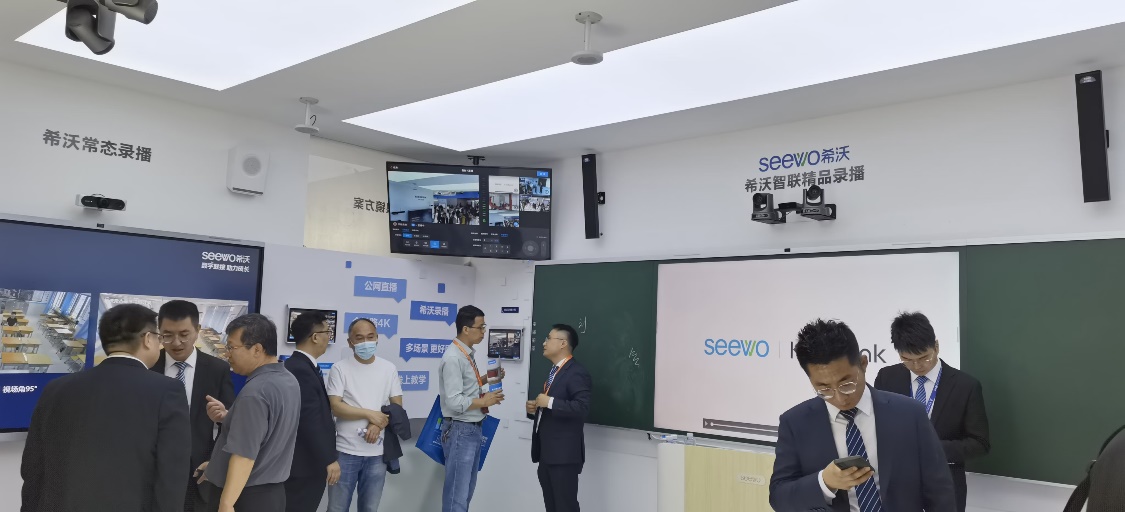 伴随数字化转型浪潮,结合新一代智慧校园建设需求,众多参展企业带来新型智慧校园、智慧课堂建设方案,聚焦教育新基建,许多参展企业把技术和教育融合应用场景解决方案作为新热点,实现教、学、研、管、测的数字化转型。信息处叶红林重点参观了视睿科技的希沃展厅,希沃从教学场景数字化、教学过程数字化、教师发展数字化和教育治理数字化让参会者尽情体验。还有好视通、文香等数字化校园的整体方案提供商。