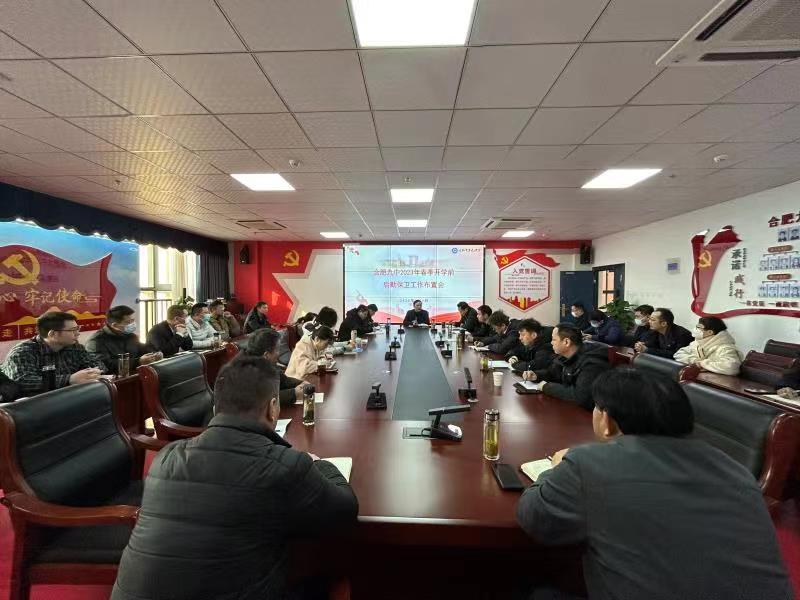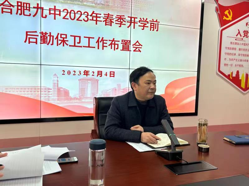开学在即,为确保合肥九中春季开学后勤保障工作有序、高效开展, 年2月4日上午,校党委委员、副校长许祖国主持、召开春季开学前后勤保障工作布置会,总务处、保卫科、财务科、食品安全工作组等全体人员及食堂、配餐、物业、保安、运维、保健室等第三方主要负责人参加会议。