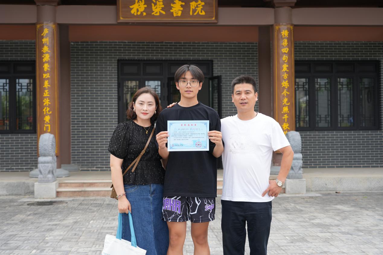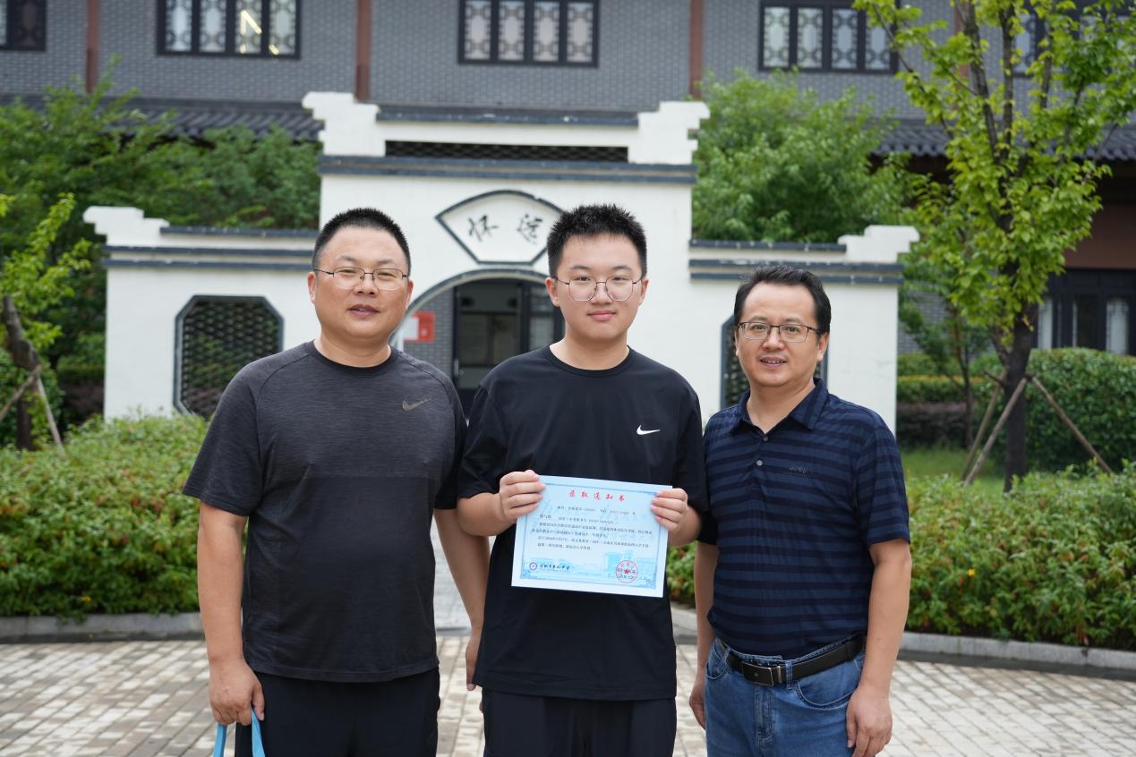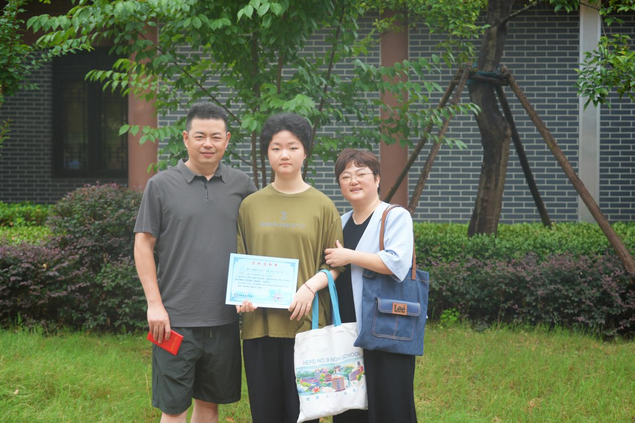 (合肥九中党委书记章伟为李思苧发放四牌楼校区录取通知书)
