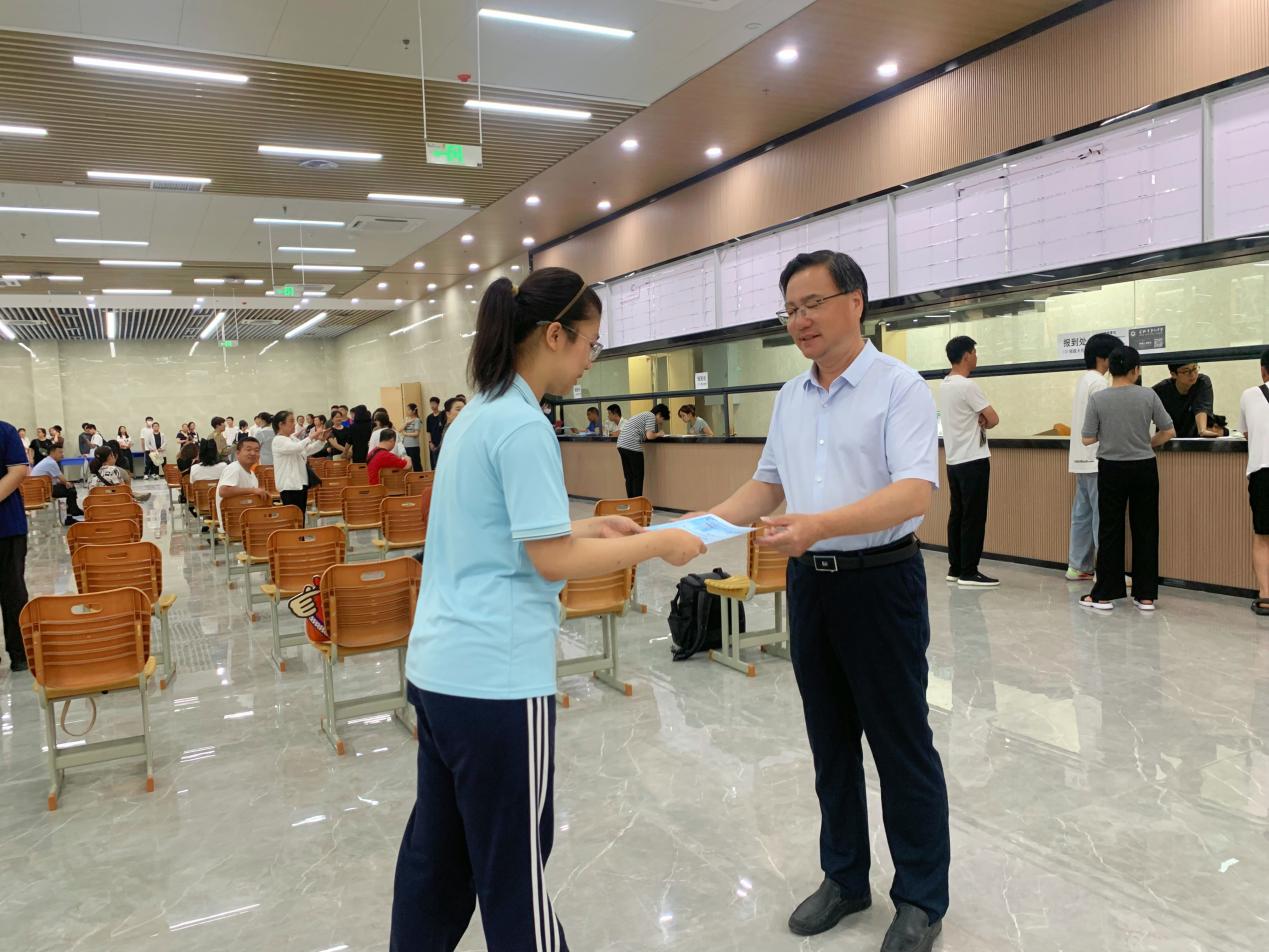 (合肥九中校长张永剑为张皓涵发放新站校区录取通知书)