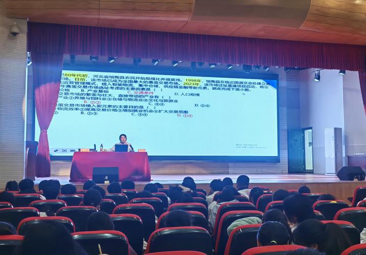 历史江平平老师剖析了答题过程中同学们容易出现的问题,讲解了选择题中的排除法和深挖法以及非选择题要做到“一个前提,两个原则”,同时用近年的高考真题指导学生学会梳理答案要点。