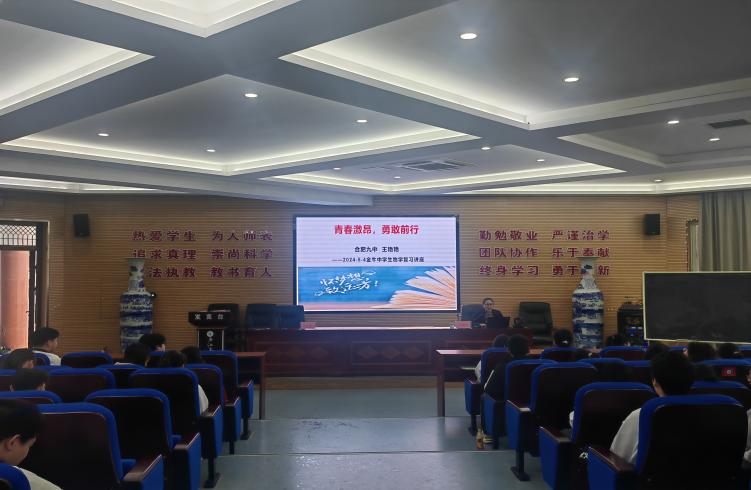 合肥九中派驻金牛中学挂职干部马亚亮以《青春无畏,高考加油》为主题为高三毕业生做了一场鼓舞人心的励志报告。他以1分钟鼓掌互动游戏开始讲座,并从心态、方法和畅想三个篇章与学生做了交流,鼓励同学们在备考时要平常心、咬咬牙和鼓鼓掌,建议同学们掌握整合知识点、归纳解题思路、不断做错题、总结答题策略的方法策略,最后以美好的大学畅想激发同学们持续拼搏的勇气和信心。