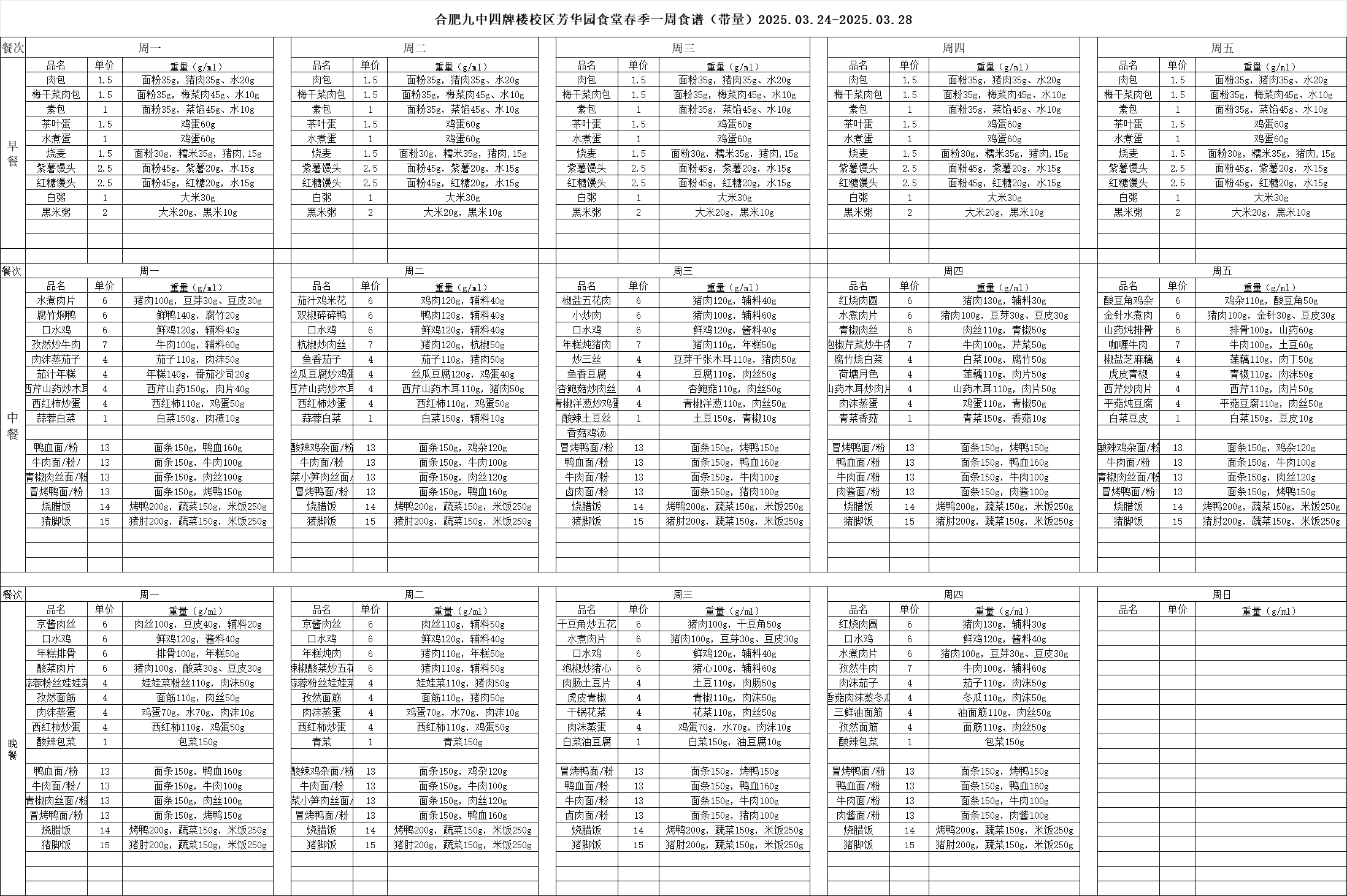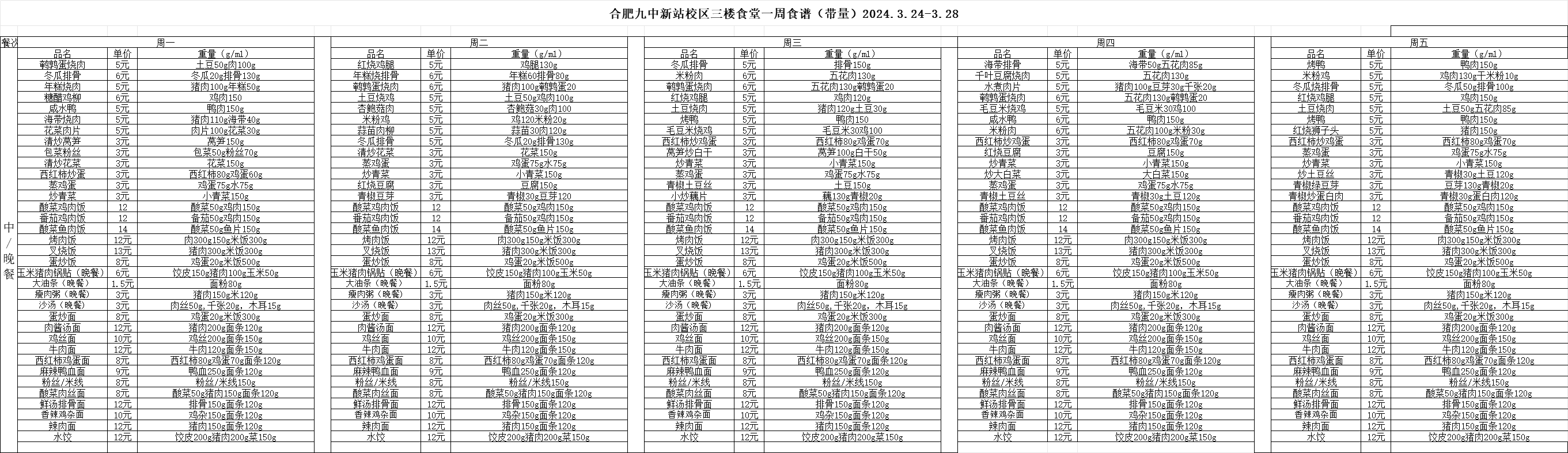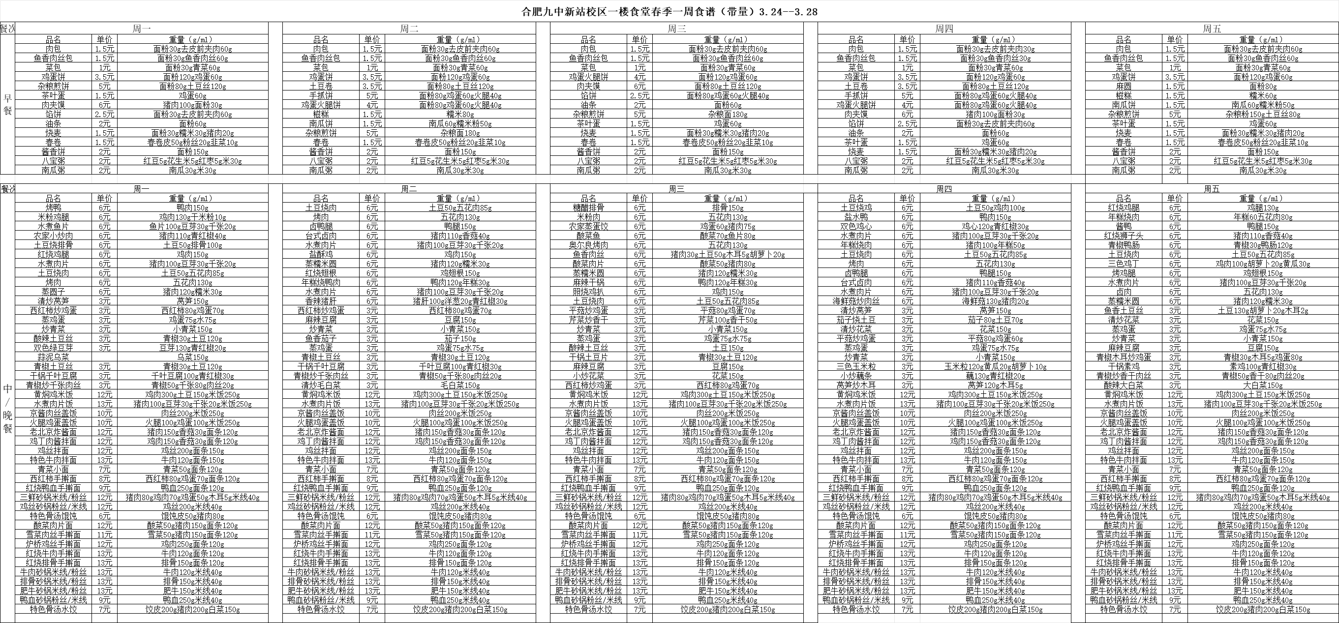 合肥九中“你呼我应”渠道及一周食谱公示(带量)