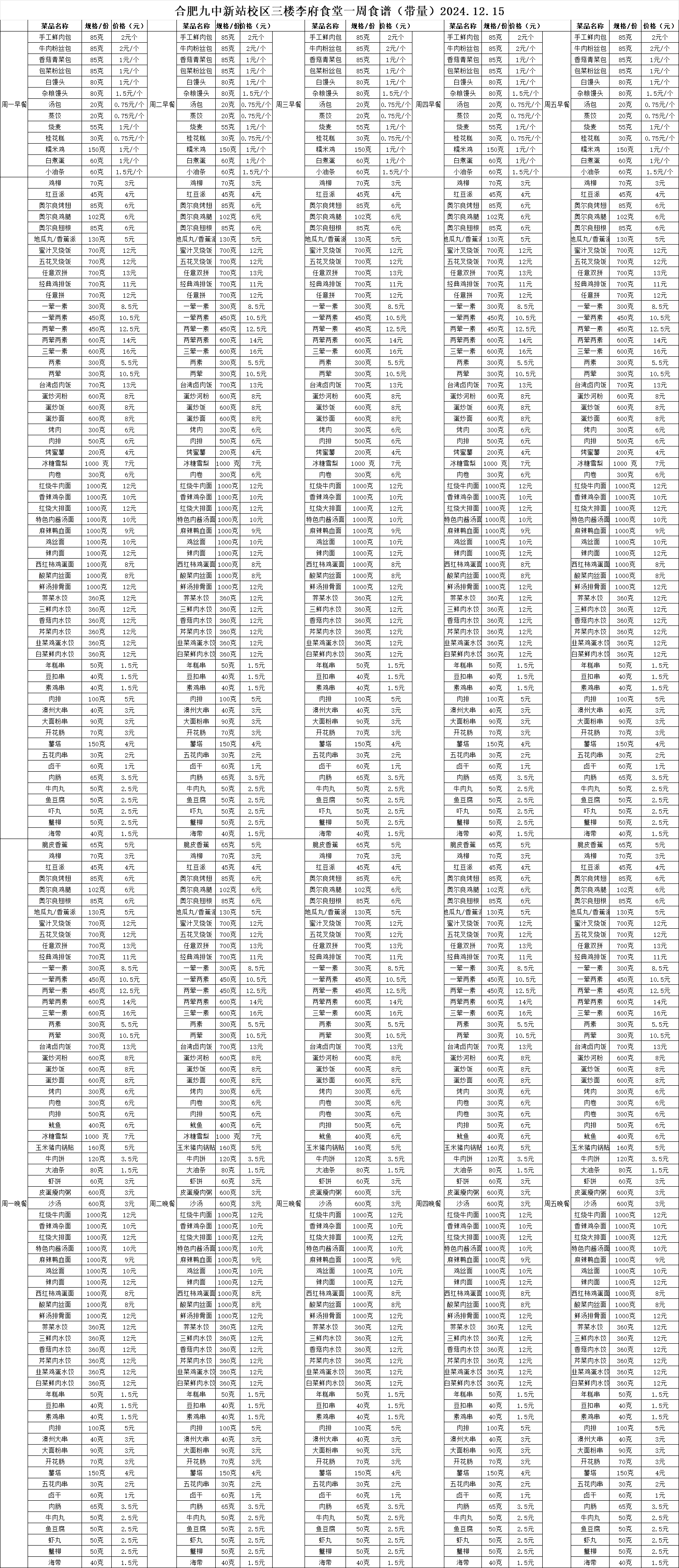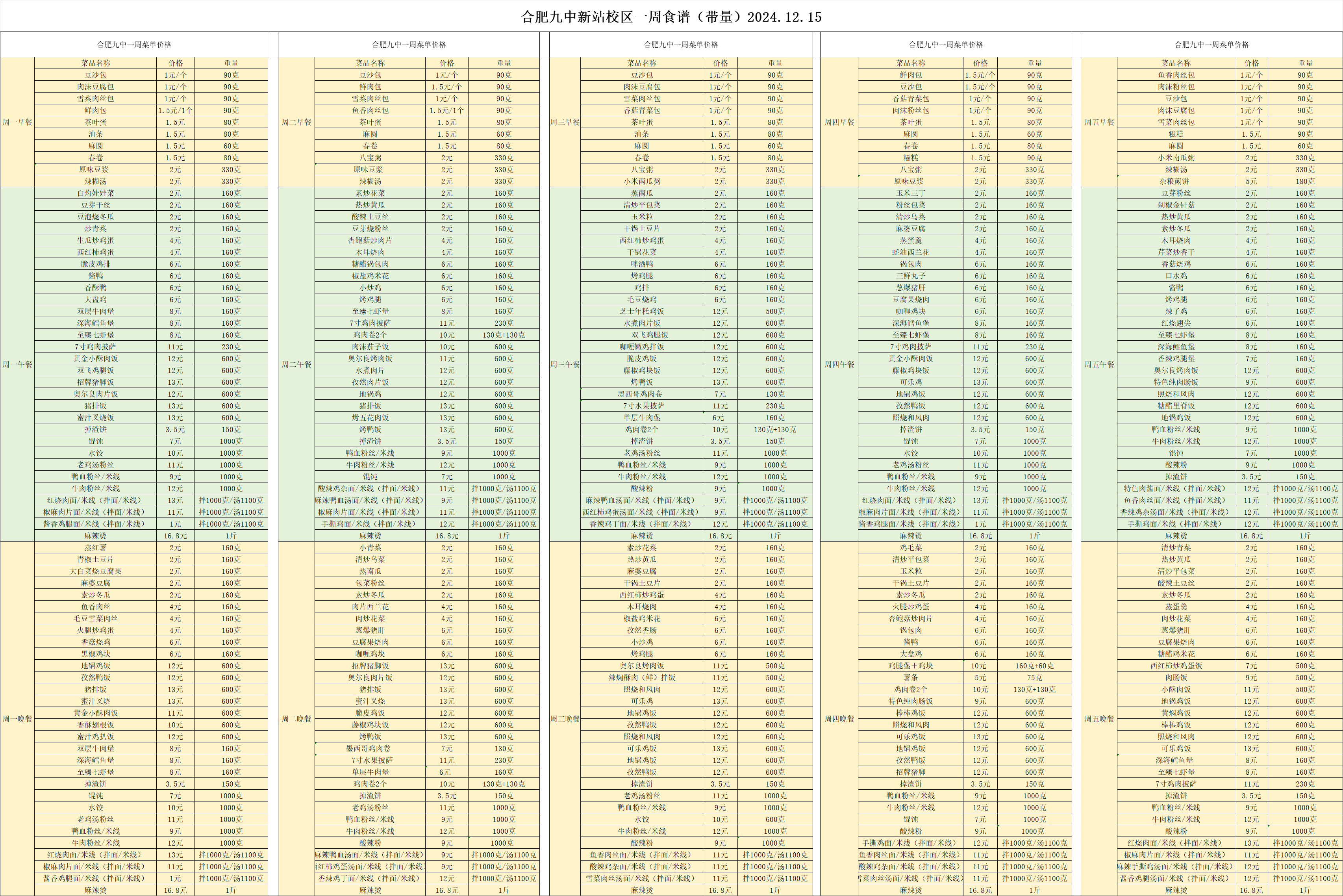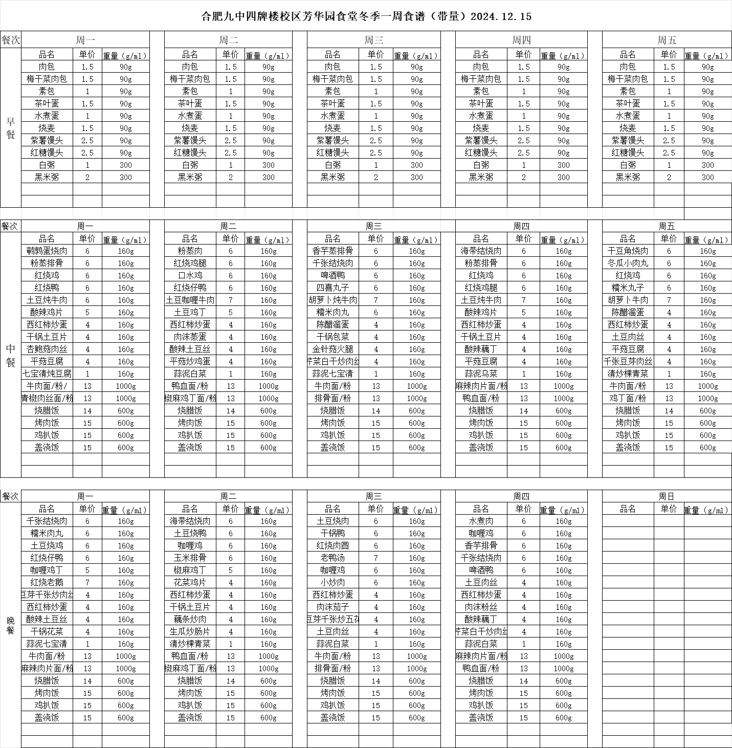 合肥九中“你呼我应”渠道及一周食谱(带量)