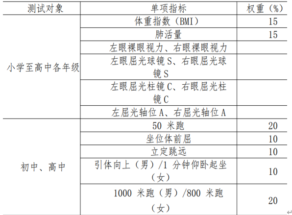 附表一:合肥市第九中学《国家学生体质健康标准》测试要求