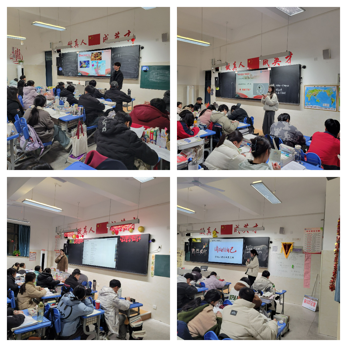 晚上7点,副校长汪玉慧为高三学生带来了暖心的广播校会,勉励高三学子要怀揣伟大梦想,沉心静气,继续奋勇前行。随后,各班级召开班会,班主任们与同学们一起回顾寒假生活,一起畅想高三后半程的学习与生活。