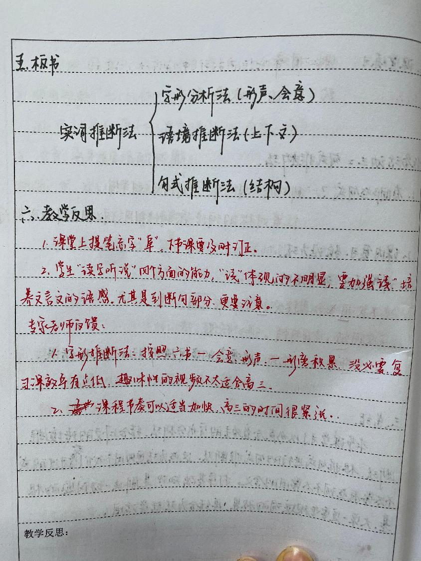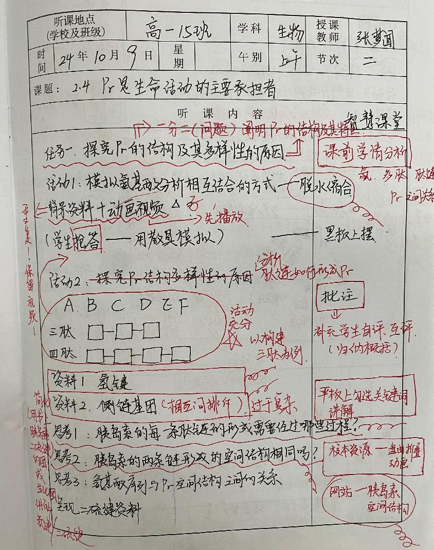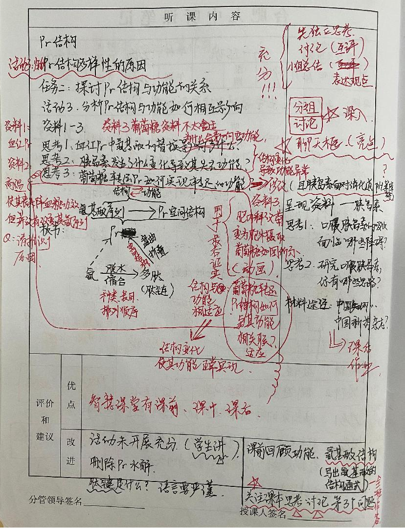 教师听课笔记也记录详实,不仅有对授课教师教学过程的完整记录,还详细写下了听课的心得体会、优点借鉴以及自己的思考建议。在互评互学中,老师们不断汲取他人之长,反思自身教学,有力地促进了教学方法的交流融合与共同提升,形成了良好的教学研讨氛围。