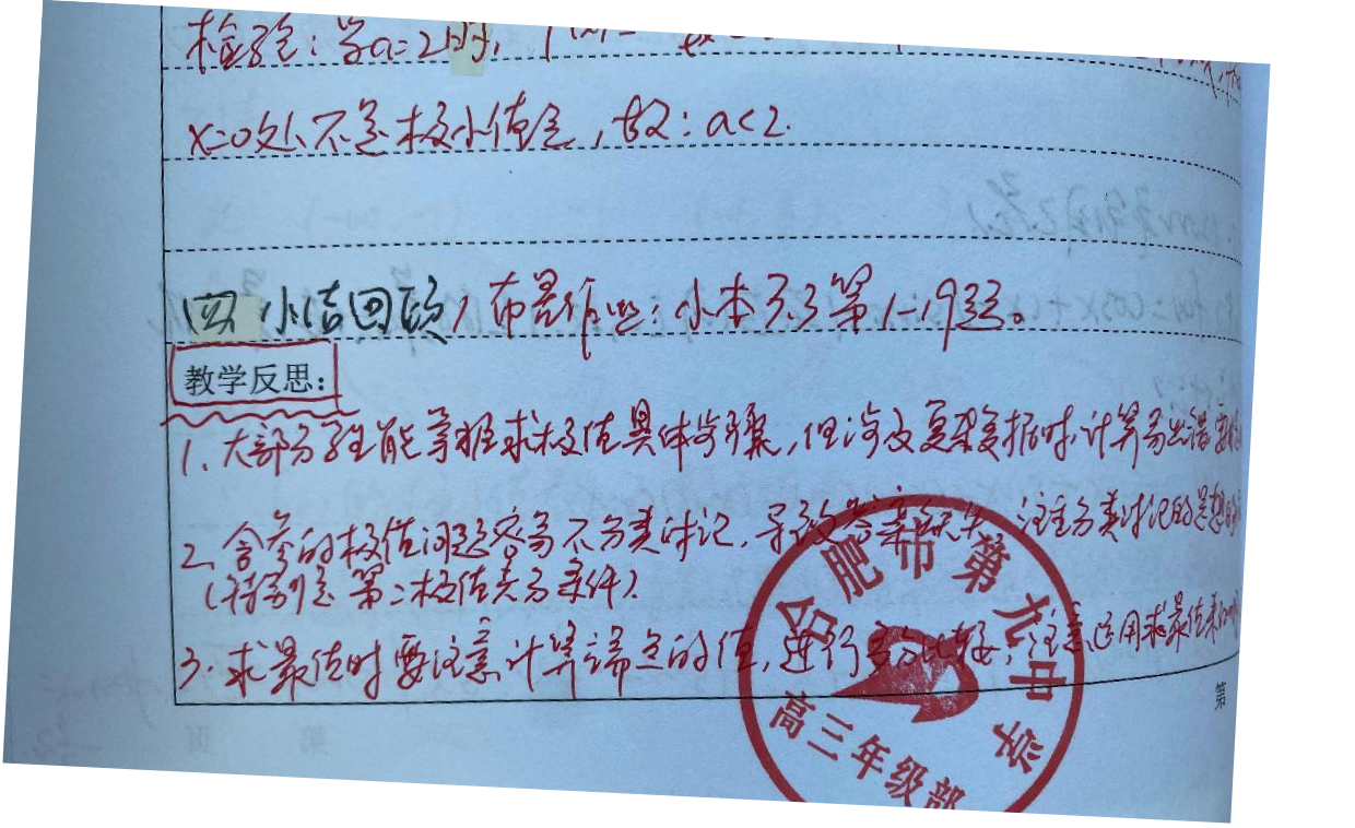 在教师教案检查中,一本本教案展现出老师们严谨的教学态度和精心的教学设计。学科知识梳理详细,教学目标明确,重难点突出,教学方法多样且贴合学生实际。既有对教材内容的深入挖掘,又有教材之外补充的拓展性知识,还精心设计了课堂互动环节、课后作业并撰写教学反思,每一个环节都凝聚着老师们的智慧与心血,为课堂教学的顺利开展提供了坚实保障。