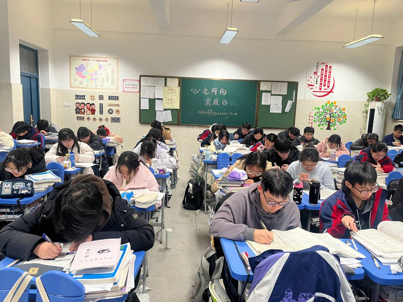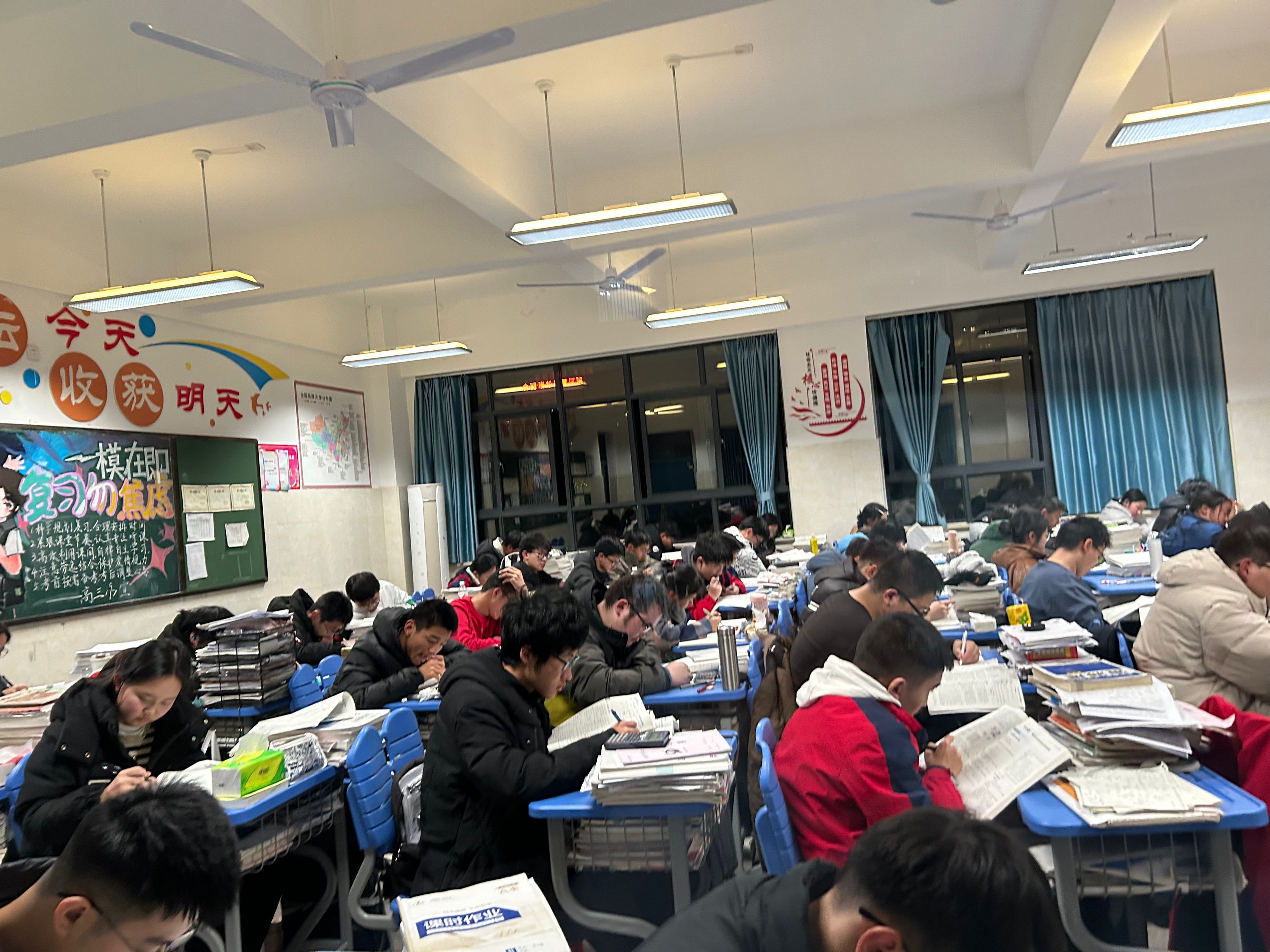 晚自习时,教室里静谧而有序。灯光下,学生们沉浸在题海中,或是梳理白天课程的知识点,或是钻研一道道难题。遇到困惑,他们或查阅资料,或专心思考,没有交头接耳的喧闹,只有笔尖在纸面摩挲的沙沙声,每个人都在为自己的未来默默耕耘,充分利用这自主学习的黄金时段查漏补缺、深化理解,将知识内化为能力。全时段陪伴的楼层值班老师随时为学生答疑解惑,让学生们在紧张的学习氛围中感受到温暖与关怀。