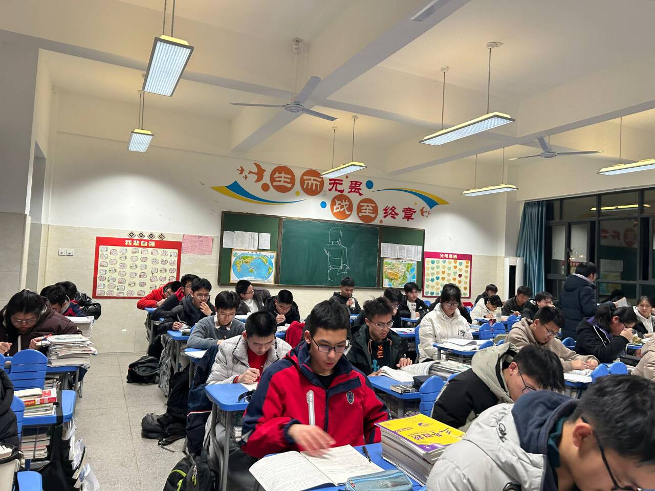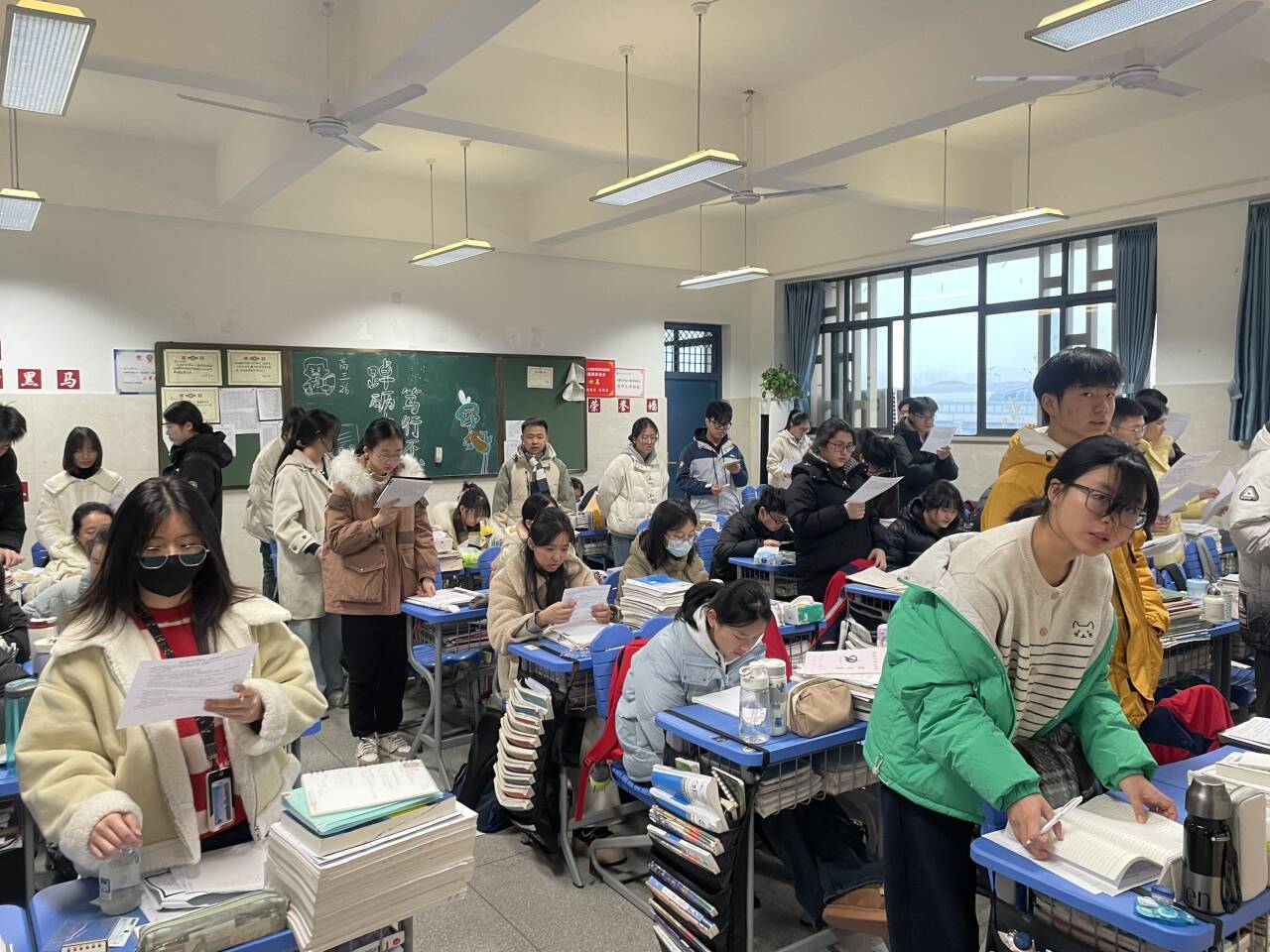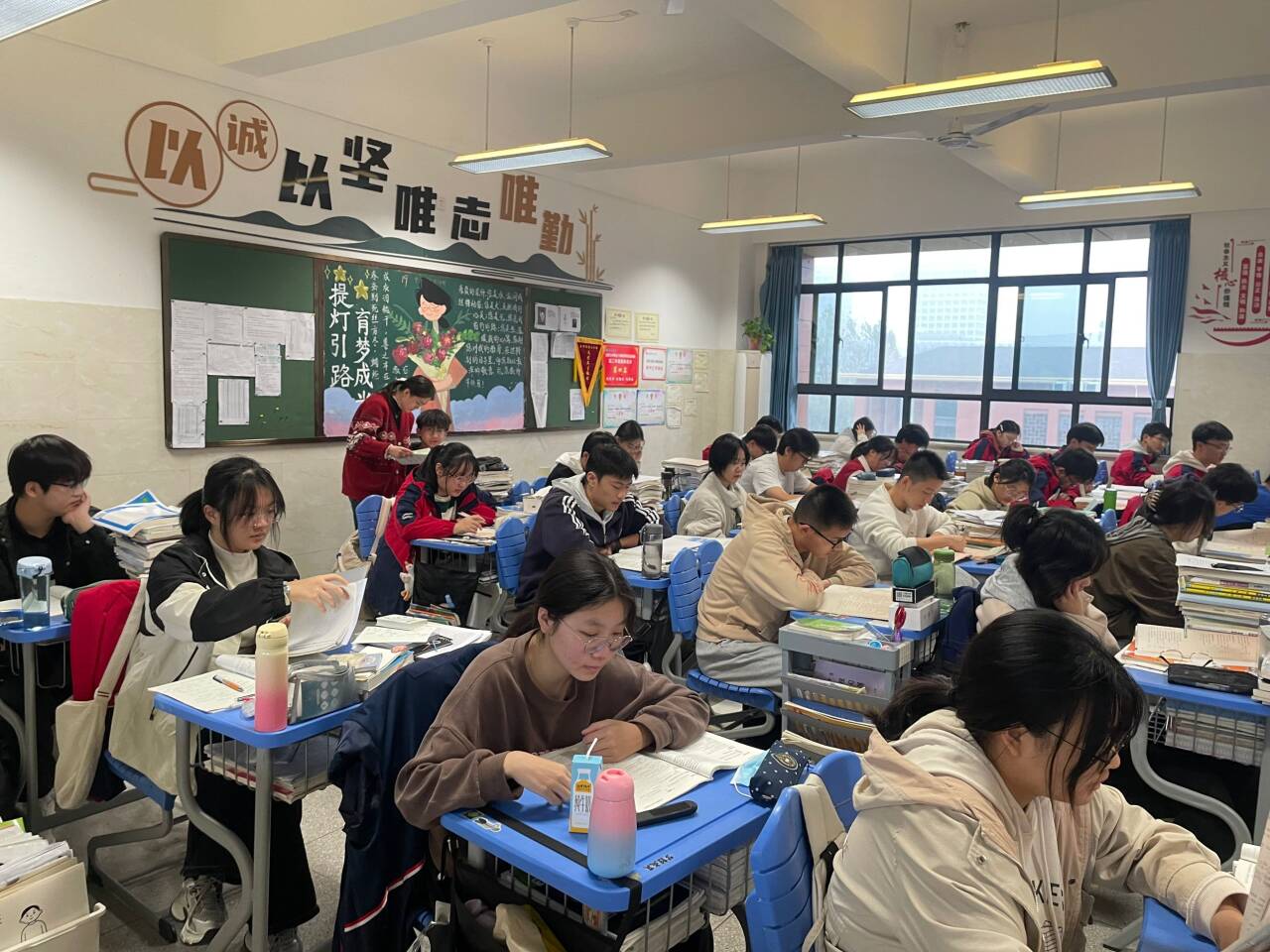 晨曦初露,高三的早读课便在朗朗书声中开启。同学们精神饱满,或诵读语文古诗词,于平仄韵律中感受中华文化魅力;或背诵英语单词、范文,在字母的海洋里为语言能力筑牢根基。他们身姿挺拔,声音洪亮且专注,不少同学还自觉制定背诵计划,在早读有限的时间内争分夺秒,强化记忆关键知识点,为一天的学习热身。语文、英语学科老师准时到岗,确保每位学生都能迅速进入学习状态,充分利用早晨记忆力较佳的黄金时段。