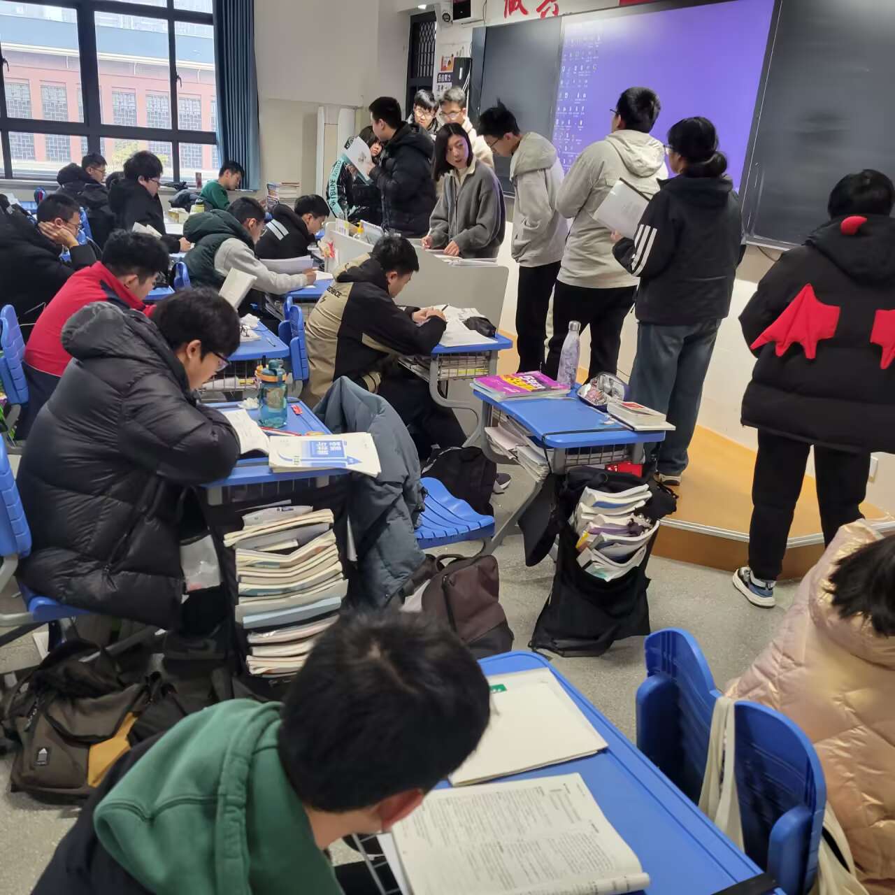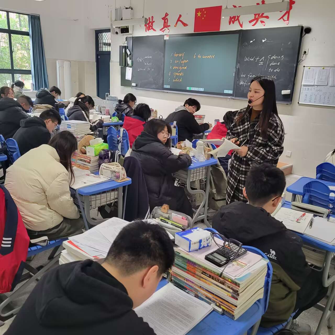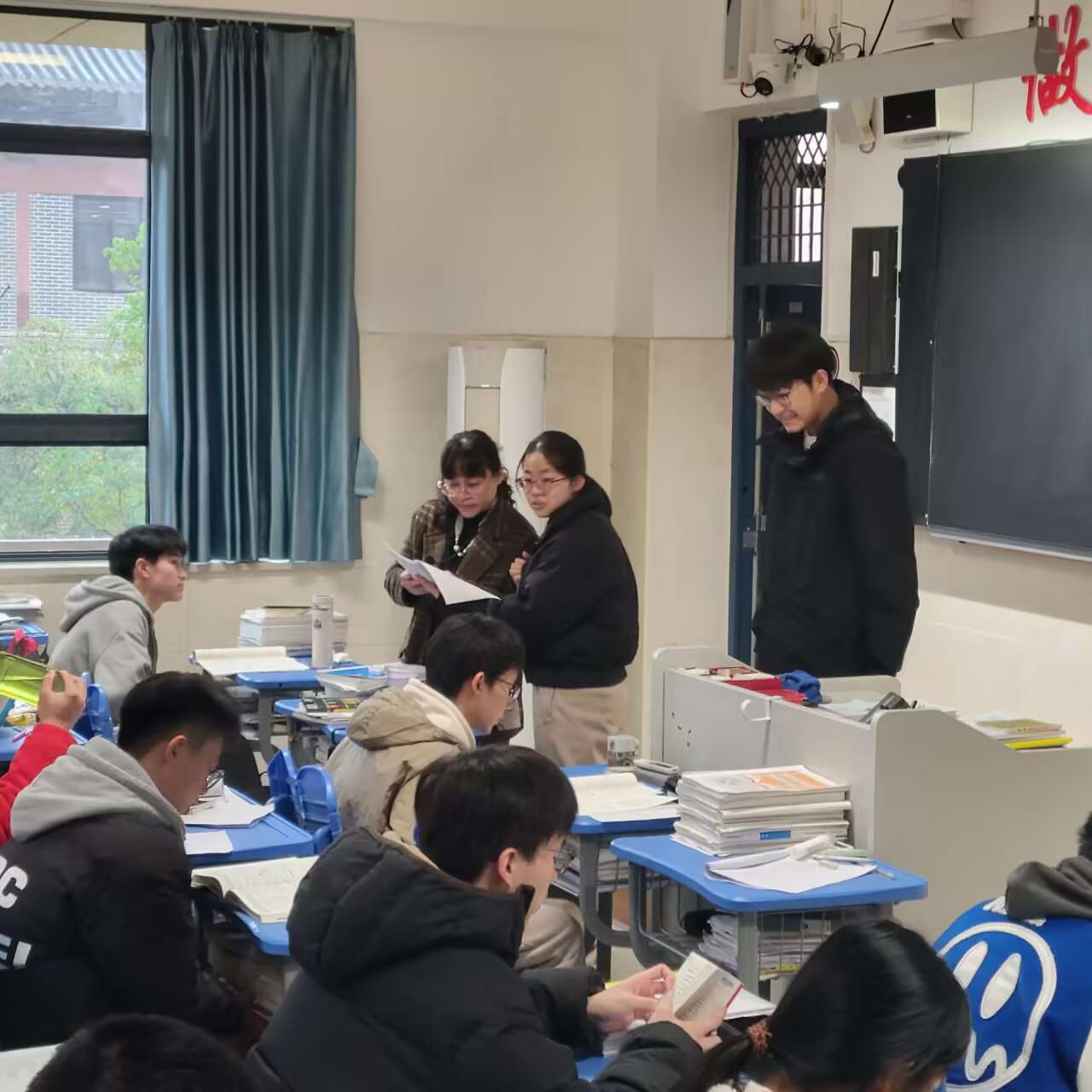 晨曦初露,高三的早读课便在朗朗书声中开启。同学们精神饱满,或诵读语文古诗词,于平仄韵律中感受中华文化魅力;或背诵英语单词、范文,在字母的海洋里为语言能力筑牢根基。他们身姿挺拔,声音洪亮且专注,不少同学还自觉制定背诵计划,在早读有限的时间内争分夺秒,强化记忆关键知识点,为一天的学习热身。语文、英语学科老师准时到岗,确保每位学生都能迅速进入学习状态,充分利用早晨记忆力较佳的黄金时段。