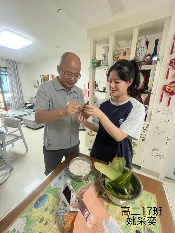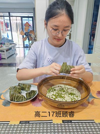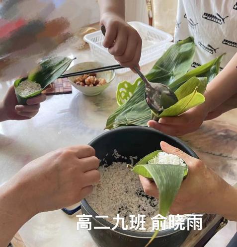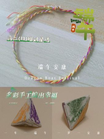 端午假期,动员学生积极参与端午习俗体验活动:包粽子、编制五彩绳、艾草插花、制作香囊……学生参与热情高涨,纷纷展示了自己的节日成果。他们或在家长指导下完成,或自己独立完成。一张一合之间,一捆一扎之间,传递出了高二学子的端午祝福,也见证了他们的五育成长历程。让我们跟随他们的镜头,一起去感受这份节日的“欢乐”!