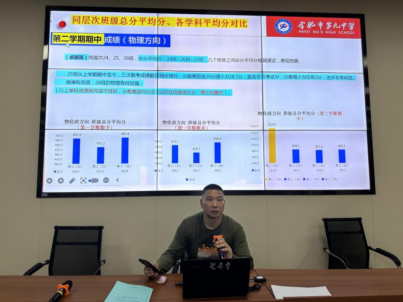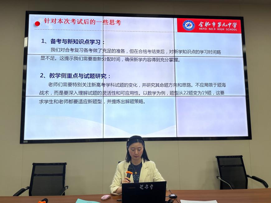 考而析得失,思而明未来。为全面总结和反思期中考试的得与失,进一步找出教育教学工作中的问题和不足,及时调整教学策略,推动教学质量稳步提升,5月8日下午,合肥市第九中学高二年级召开期中教学质量分析会。