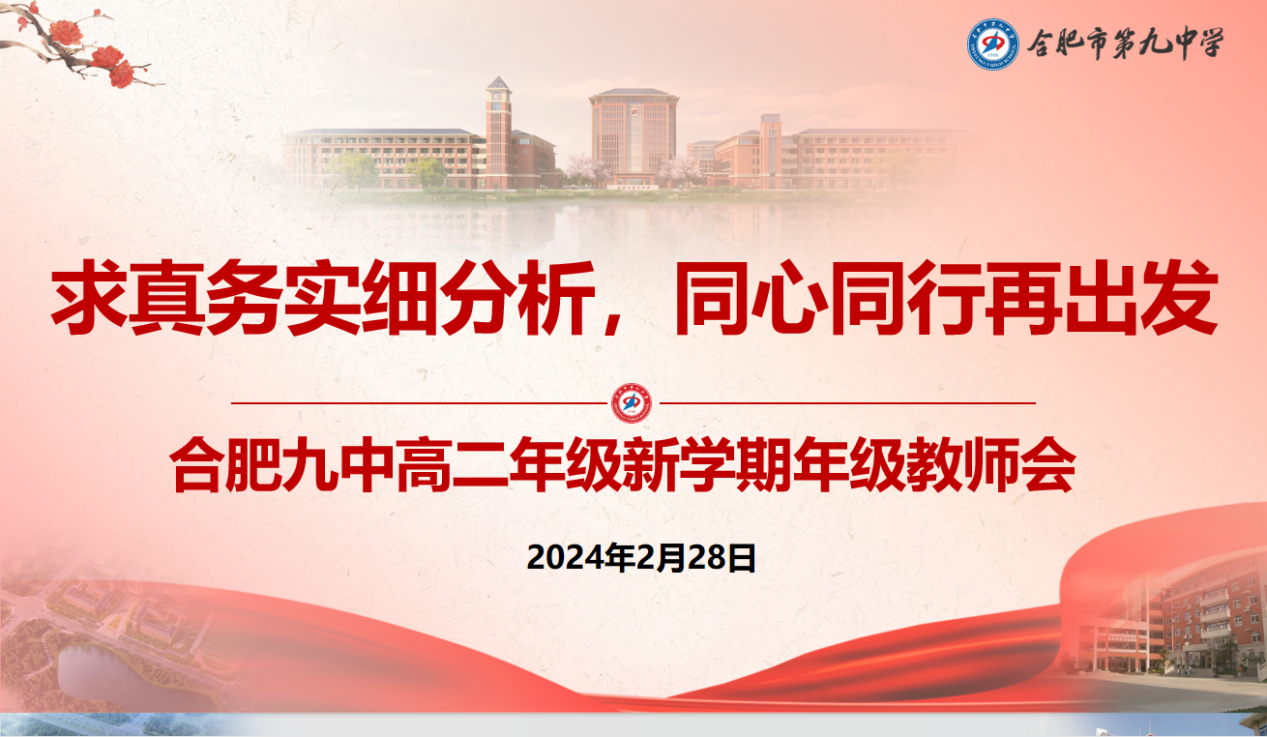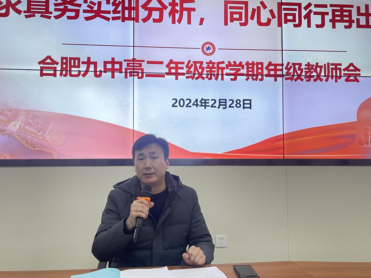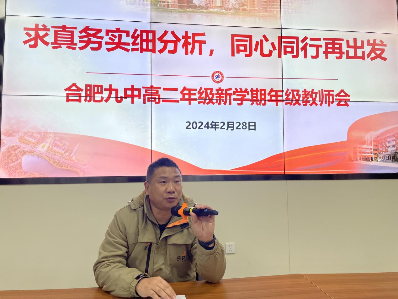 春回大地百花吐艳,龙腾虎跃万物争辉。春节的爆竹声仿佛依旧萦绕在我们耳边,新春的脚步已经伴随我们迈入新学期。满怀期待,带着憧憬,为了学校、年级的发展,2月28日,合肥九中高二年级全体教师齐聚一堂,召开新学期年级教师会,一起畅谈未来,一起描绘级部明日的新精彩。会议由高二年级部德育干事王俊峰主持。