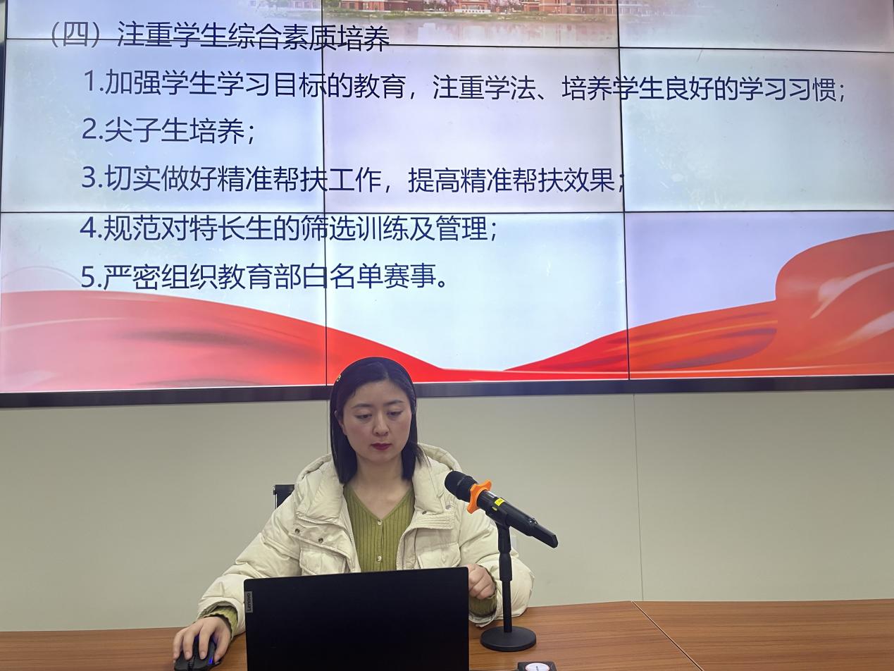 高二年级部王佳副主任带来题为“踏浪前行风正劲,心怀梦想启新程”的会议发言。她首先对高二上学期期末联考情况进行了细致的质量分析,用详实的数据呈现了各学科在教学中发现的问题。同时,就新学期的教学计划与参会老师进行交流讨论,具体包括合格考备考期间的课时安排与复习安排、合格考后高考科目的教学工作、进一步规范集体备课要求、细化作业与考试管理、注重学生的综合素质培养等。通过王佳的分析,我们看到了精细化管理对教学质量的重要支撑作用。