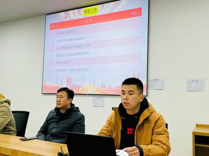班主任们也齐聚一堂,谋划新学期年级、班级的发展蓝图。会上,高二年级部德育干事王俊峰就开学有关事项做出提醒,希望班主任们注意学生的行为习惯教育,同时关注学生返校情绪状态,确保一切工作安全有序。年级部教学主任王佳从学期教学计划、合格考安排、教师课表安排等方面与班主任进行沟通和讨论。