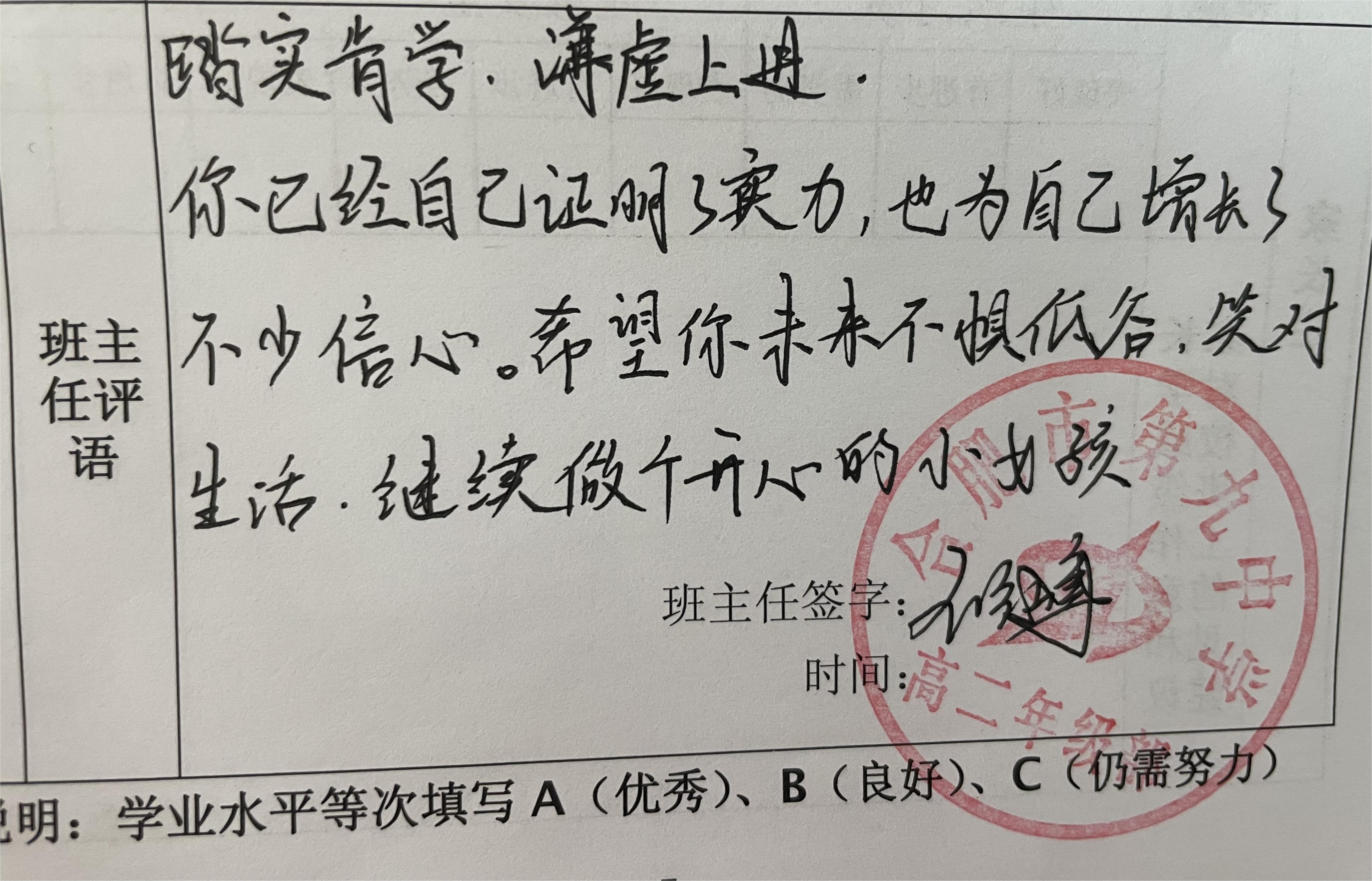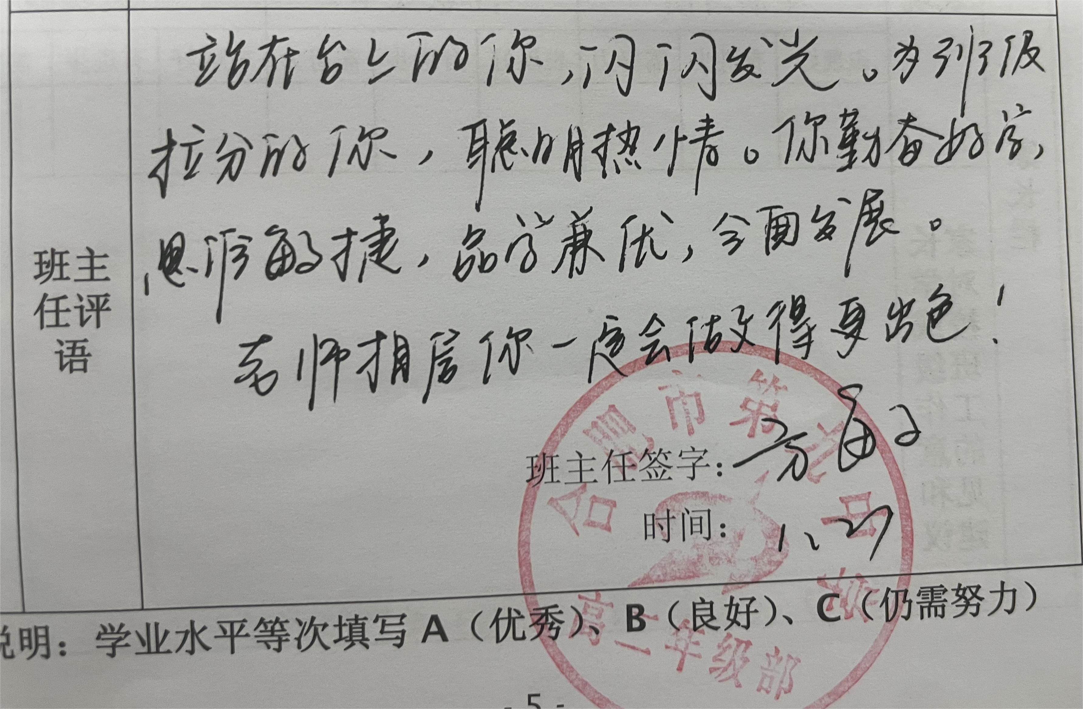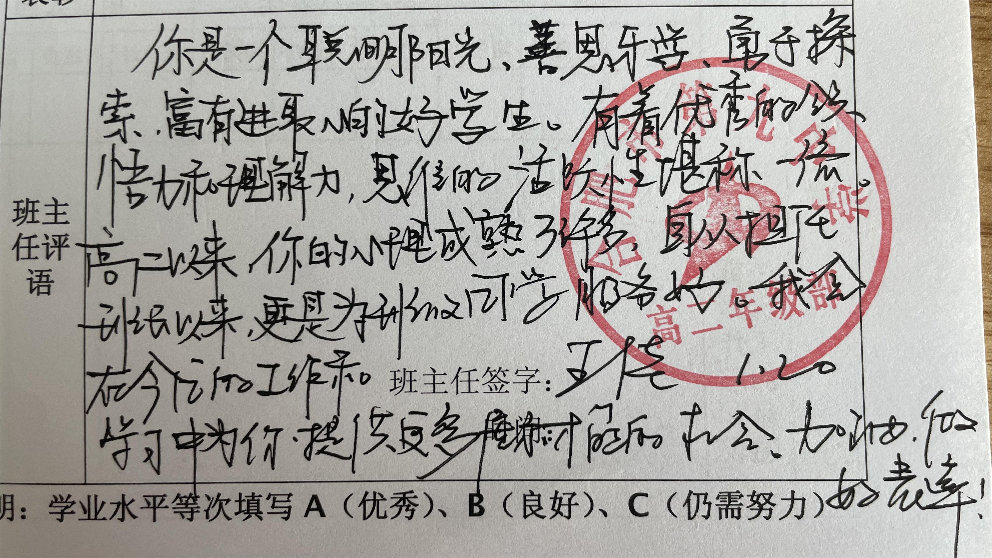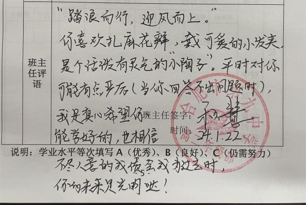 寥寥数语,是班主任们诉不完的教育心,是道不完的师生情,润物无声,温暖着学生与家长的内心。后续高二年级部将扎实推进各学期期末评语撰写工作,让评语照亮学生成长之路,成为家校共育的载体。