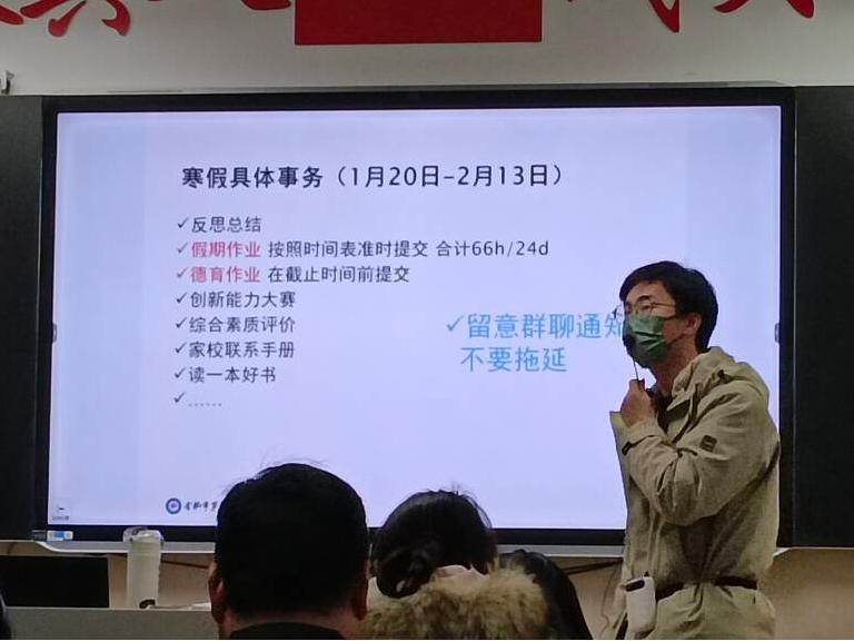 在家长会上,班主任们还为家长们带来了一些关于如何陪伴孩子度过一个和谐、充实假期的建议,为家长们提供了诸多实用的技巧方法。最后班主任们就假期安全做重点强调,确保孩子度过一个安全、快乐又充实的假期。家长会结束后,家长们热情不减,围在班主任身边沟通小孩情况,咨询如何安排寒假学习生活,班主任们耐心解答,共同协商如何指导孩子走好下一步。