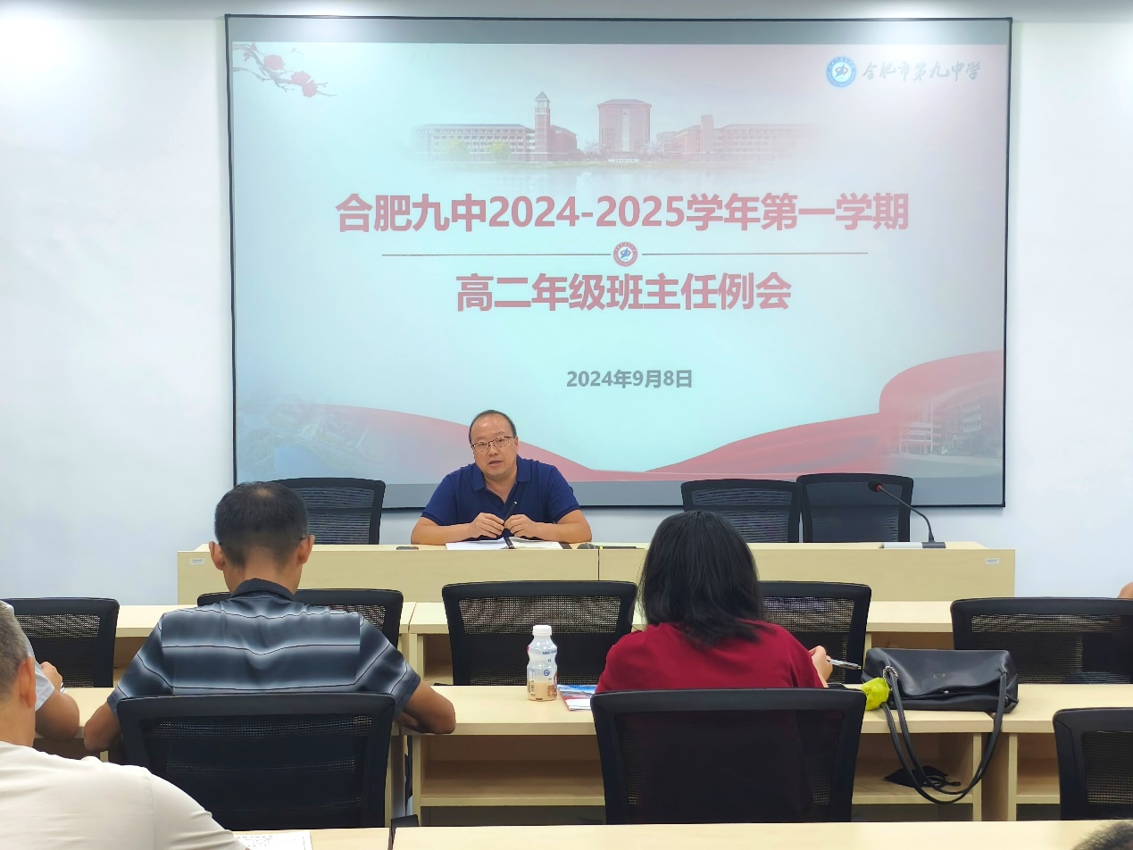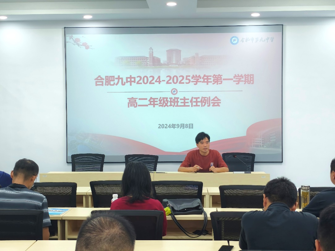 2024年9月8日晚,合肥九中高二年级新学期第一次班主任例会顺利举行。会议总结了开学一周以来各项教育教学工作中的优点和不足,并对本学期开学阶段的教学和德育工作进行了部署和强调。会议由年级部副主任尹行锦主持,年级部主任姚昌丰、副主任王闯生、魏昌山出席了会议。