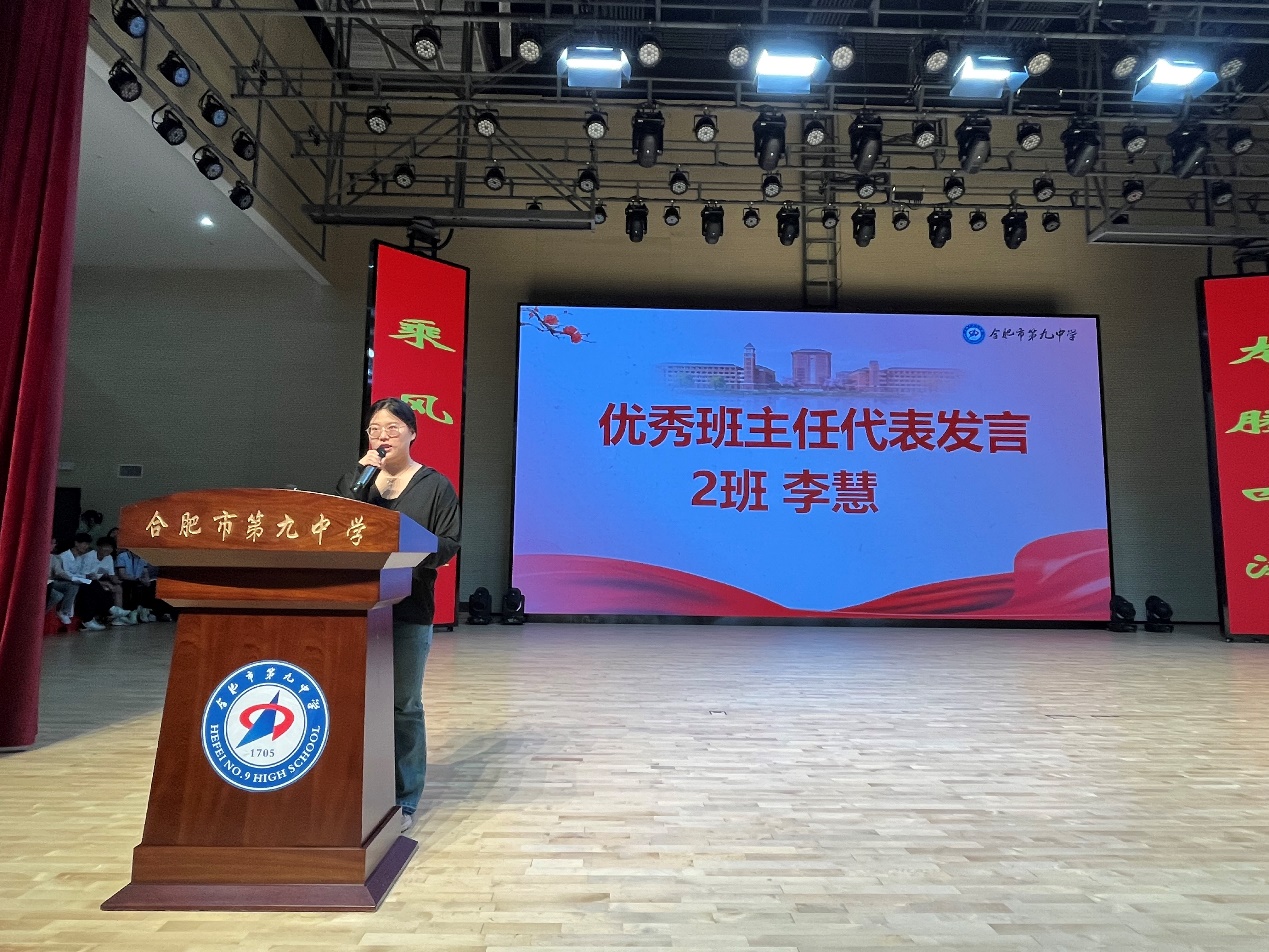最后,高一(2)班班主任李慧老师作为优秀班主任代表发言,她肯定了每个同学付出的努力,希望每一位同学都能全面发展,实现自我,增强实力,收获硕果。
