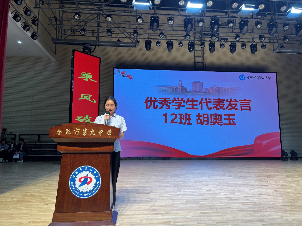 接着,高一(12)班胡奥玉同学作为优秀学生代表发言,分享了自己学习的心得和经验,她表示,面对学习,必须要吃积极向上的心态,理性认识自身的基础上,发挥自身优势,合理把控时间,脚踏实地的提升学习效率。