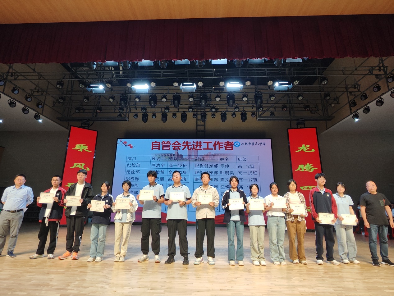 接着大会对获得“横渠之星”、“卓越之星”、“凌云之星”的同学进行了表彰,主持人宣读了获奖名单,邀请他们上台领取奖状并合影留念。一张张奖状,是他们拼搏的见证,是成长路上的荣光,也是践行梦想的动力,也希望高一全体同学以这些受到表彰的同学为榜样,争当先进,力争上游,以饱满的热情投入到接下来的学习生活中。