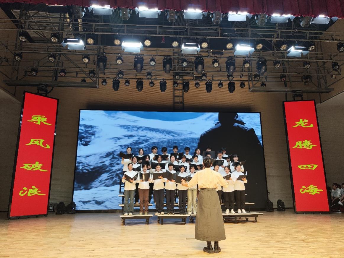 为了丰富同学们的文化生活,也为了给同学们一个展示的舞台,会议邀请了“见山海合唱团”带来合唱歌曲《奉献》,他们精彩的表现赢得在场同学热烈的掌声。