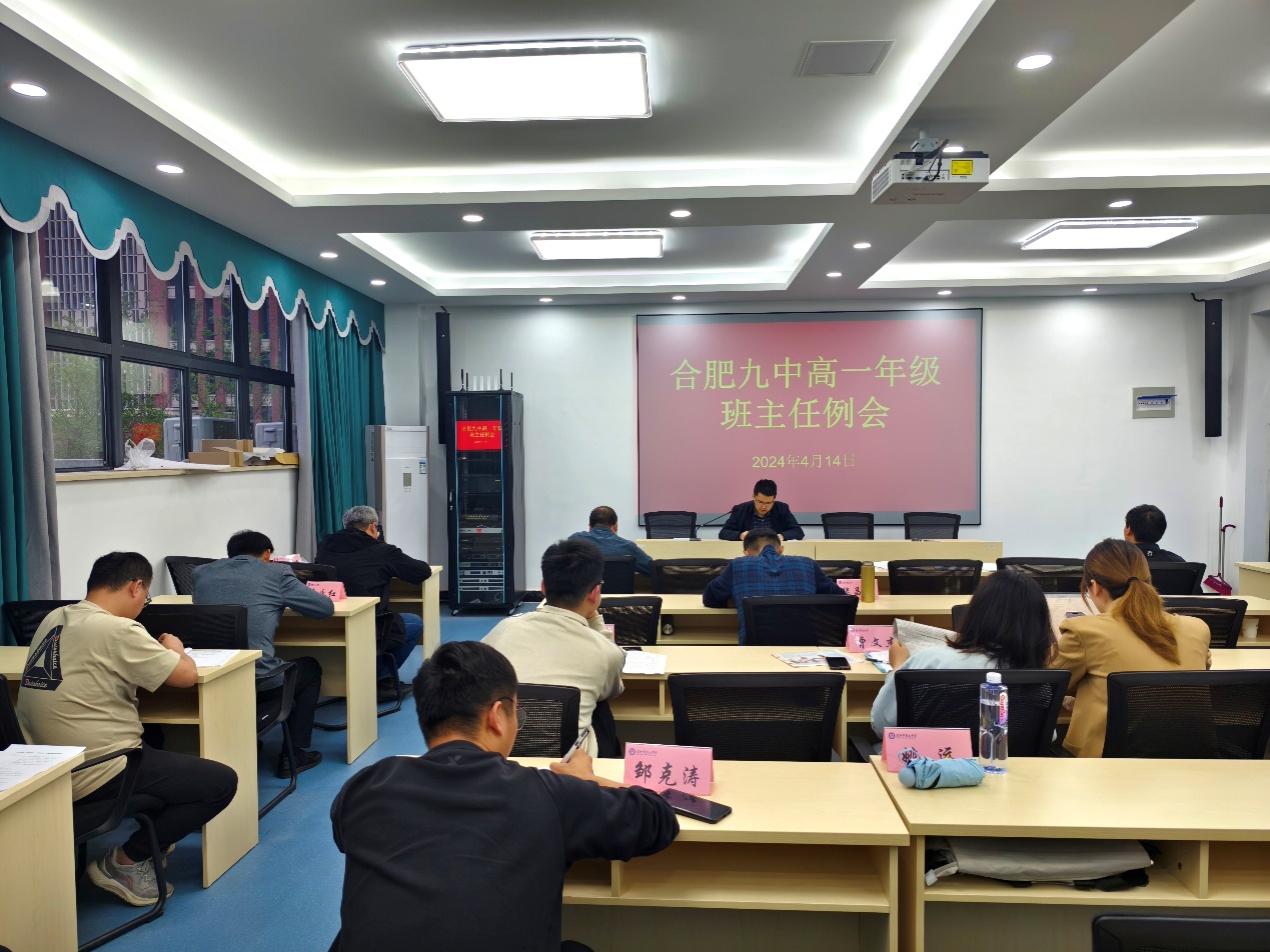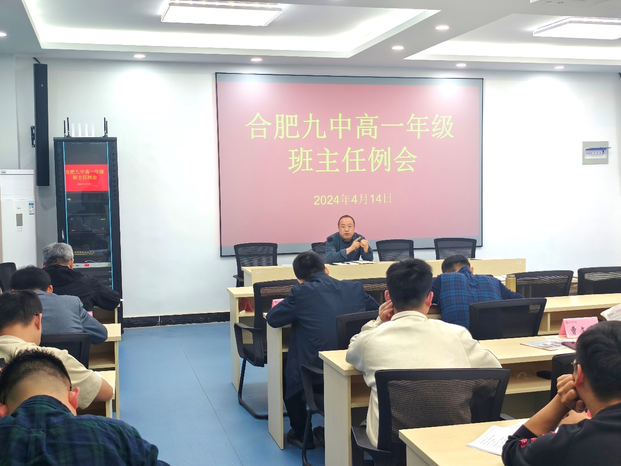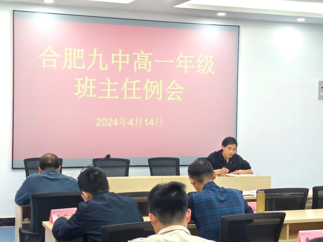 2024年4月21日下午,合肥九中高一年级部举行班主任例会。高一年级部主任姚昌丰主持会议,全体班主任参加会议。高一1班班主任张超老师分享了题为“陪孩子走过高中三年”的读书体会;年级部副主任尹行锦、王闯生分别就接下来一周的德育和教学工作进行部署;姚昌丰对具体的班主任工作细节做了总结和指导。