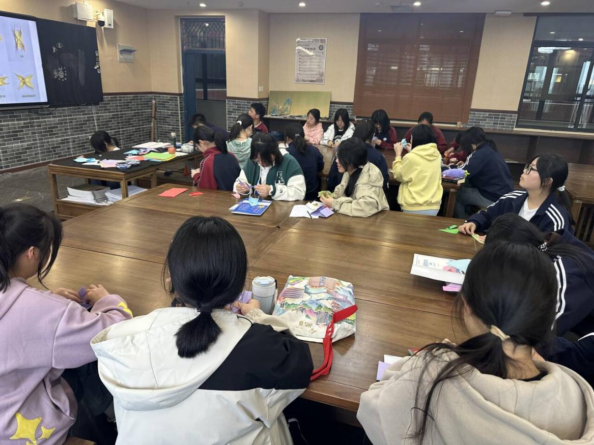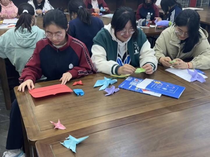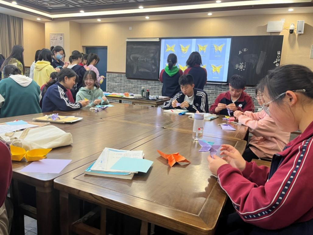 在美术教室中,《纸•艺术》课程正在如火如荼地开展。在教师的指导下,一只只灵巧的纸鹤在同学们手下诞生。在观察、思考与动手实践的过程中,同学们的观察能力、动手能力得到了进一步的提高,同时也让同学们在创造的过程中感受到了折纸工艺的美。一张平平无奇的纸,却在先民的智慧中转化为一只只活灵活现的小动物,开出一朵朵灵动美丽的花,同学们在折纸的过程中,也深切体认了中华传统文化之美。这门校本课将趣味与传统相结合,学生在兴趣中 学习实践,在创造的过程中收获快乐、提升能力。