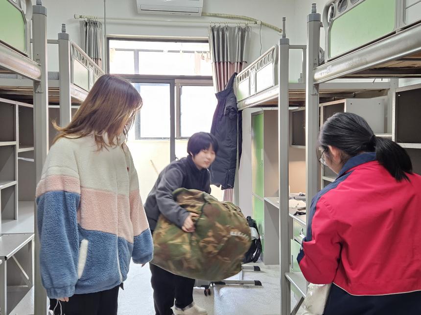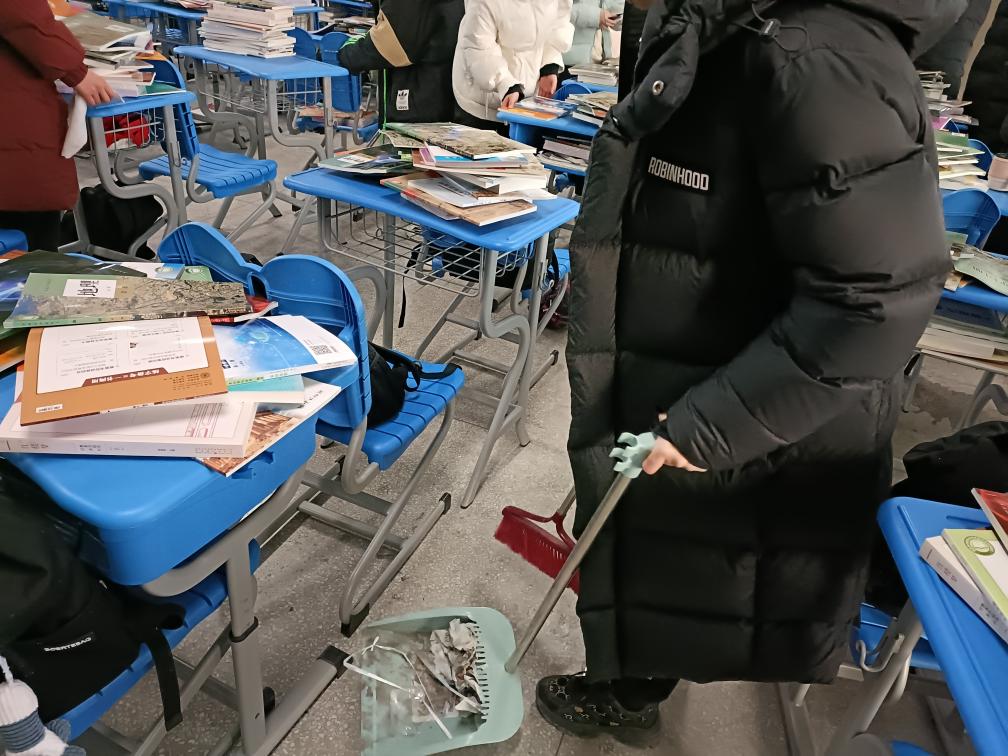 下午两点半,高一学生陆续进入校园,在班主任和志愿者的帮助下,住宿生进入宿舍整理内务。随后,在年级部和班主任的带领下,高一各班学生进入班级领取新课本并开展大扫除。