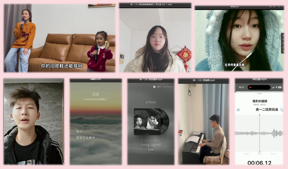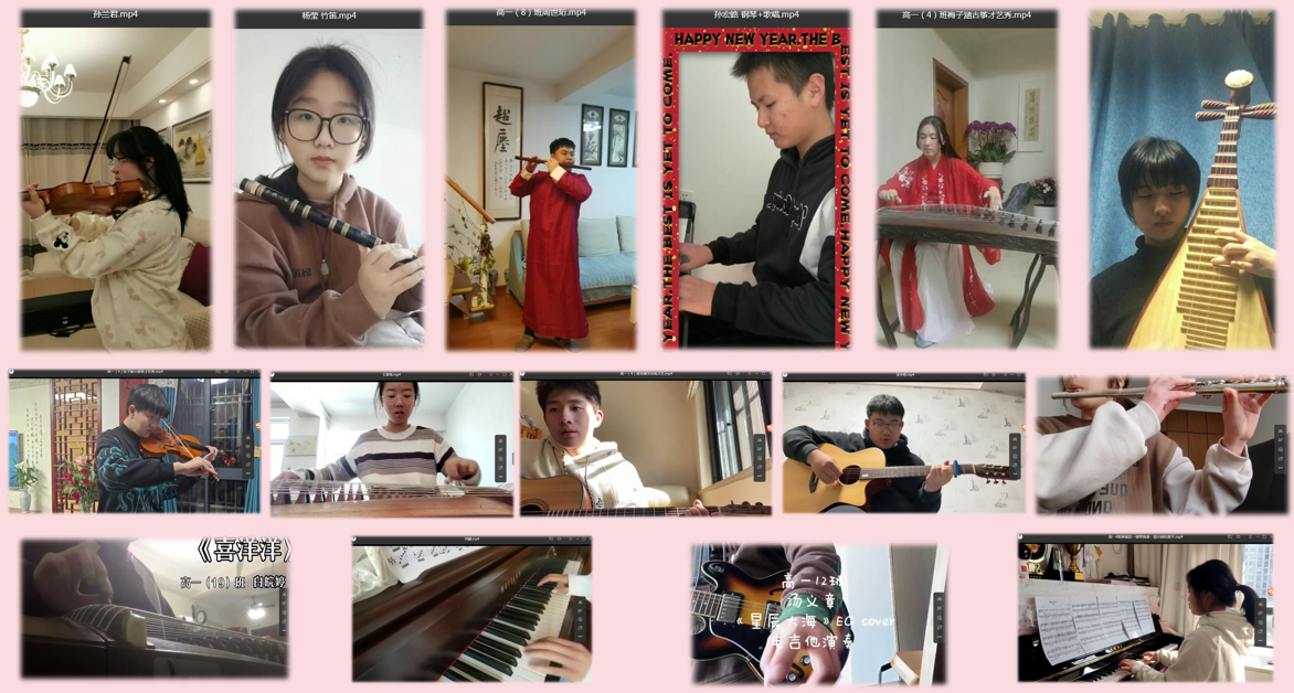 在辞旧迎新之际,同学们以歌言志,以乐抒情,同学们一展歌喉,借助钢琴、小提琴、琵琶、古筝、笛子等乐器,通过自已娴熟的歌唱与演奏,让歌声、让音符在“线”上流淌,一同相聚云端,且歌且行!