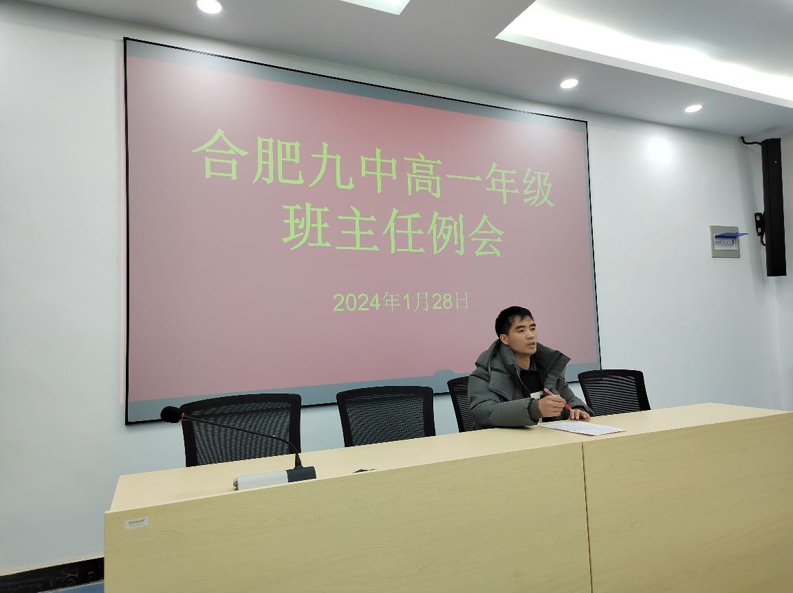 时光清浅,辗转流年,忙碌而充实的一学期即将结束。为对班主任工作进行有效总结,切实提高班级管理的针对性和有效性,进一步推动班主任队伍建设,同时进行寒假工作布置,1月28日下午,合肥九中高一年级举行2023-2024学年第一学期班主任期末工作会议。会议由年级部姚昌丰主任主持,德育副校长范玮及全体班主任参加。