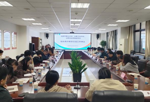 本次会议是合肥市第九中学与两所结对帮扶的中职学校——合肥工业学校、合肥市经贸旅游学校在综合高中试点背景下的教学交流活动,旨在通过教学教研工作总结、校际管理经验分享与未来工作规划,共同探索综合高中办学模式,提升教育教学质量。