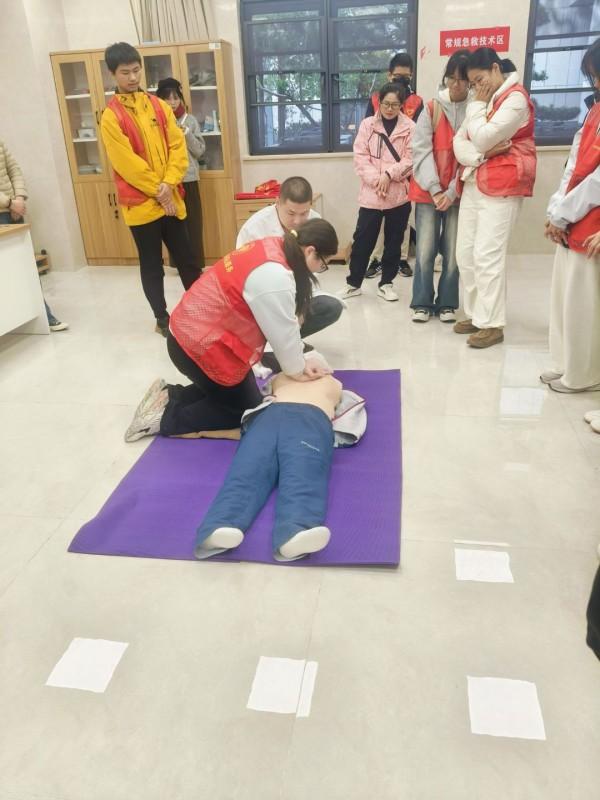 文艺表演后,志愿服务转入实践环节。市二院医护人员为同学们开展了一场生动的心肺复苏急救知识培训。从理论讲解到模拟操作,医护人员耐心指导,同学们认真聆听、踊跃实践。“按压深度要达到5-6厘米,频率保持每分钟100-120次……”在医护人员的指导下,同学们逐一在模拟人上练习操作,力求掌握每一个细节。