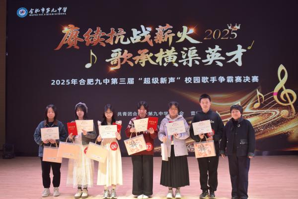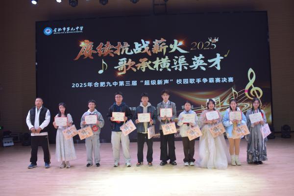 为丰富校园文化生活,落实立德树人根本任务,推动美育与校园文化深度融合,展现九中学子昂扬向上的精神风貌,合肥九中校团委、音乐组于2025年10月至11月成功举办了第三届“超级新声”校园歌手争霸赛。本届大赛以“赓续抗战薪火,歌承横渠英才”为主题,历时一个月,涵盖初选、决赛等多个环节,吸引了高一年级新站校区学生的广泛参与。
