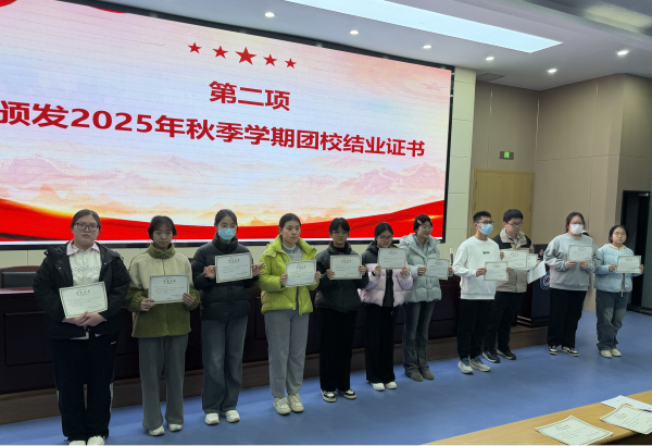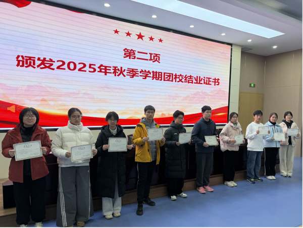 仪式在雄壮的国歌声中拉开序幕,国歌激昂,振奋人心。首先,江平平老师为完成团校课程的学员们颁发结课证书,这些证书是对他们理论学习、实践锻炼及志愿服务中卓越表现的最高赞誉。