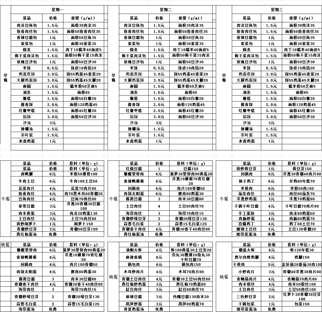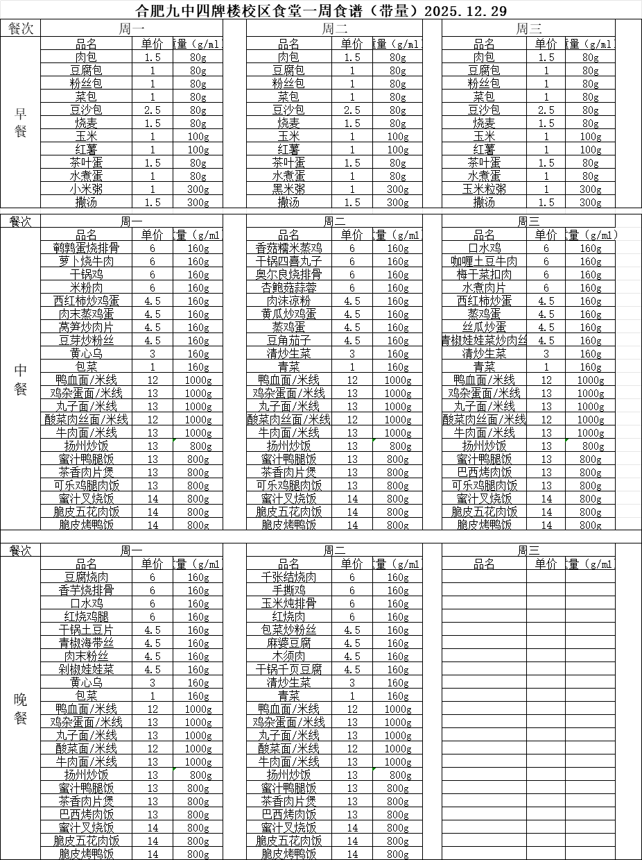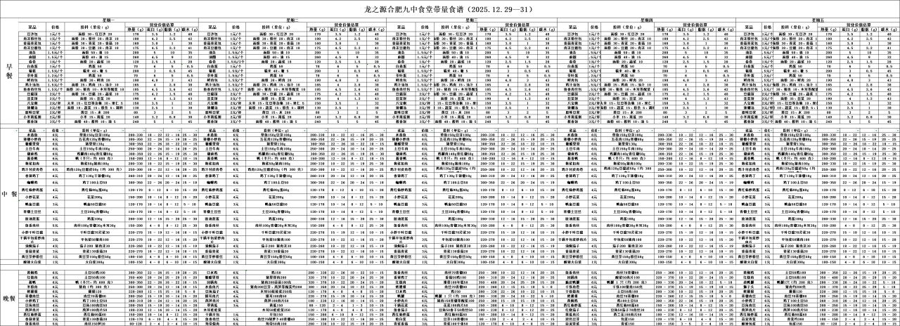 合肥九中“你呼我应”渠道及一周食谱(带量)12.29—12.31
