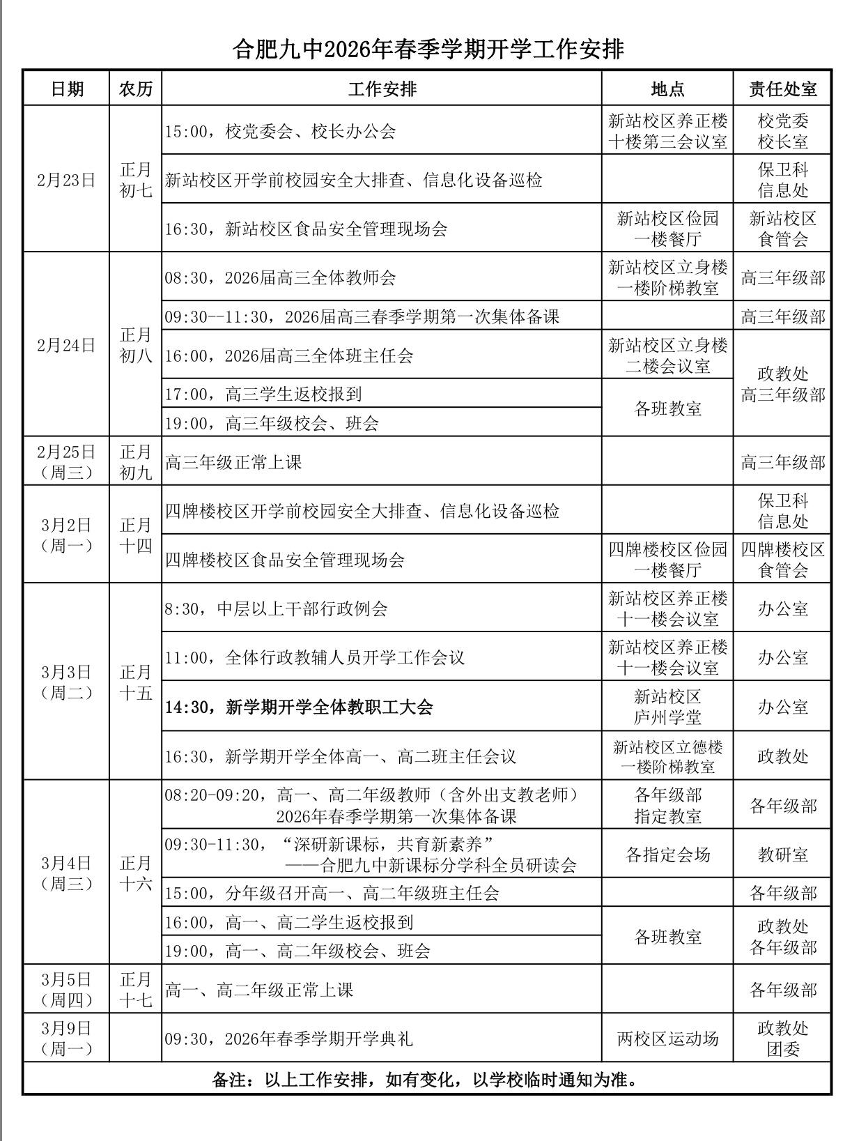 上一条:合肥九中2025年秋季学期第25周工作安排(2026年2月9——2月13日)
